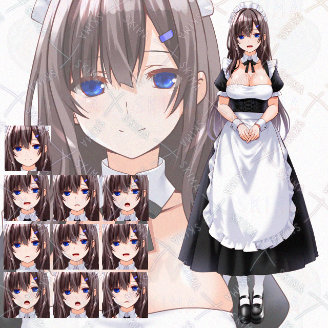 【表情10種】巨乳長髪メイドさん