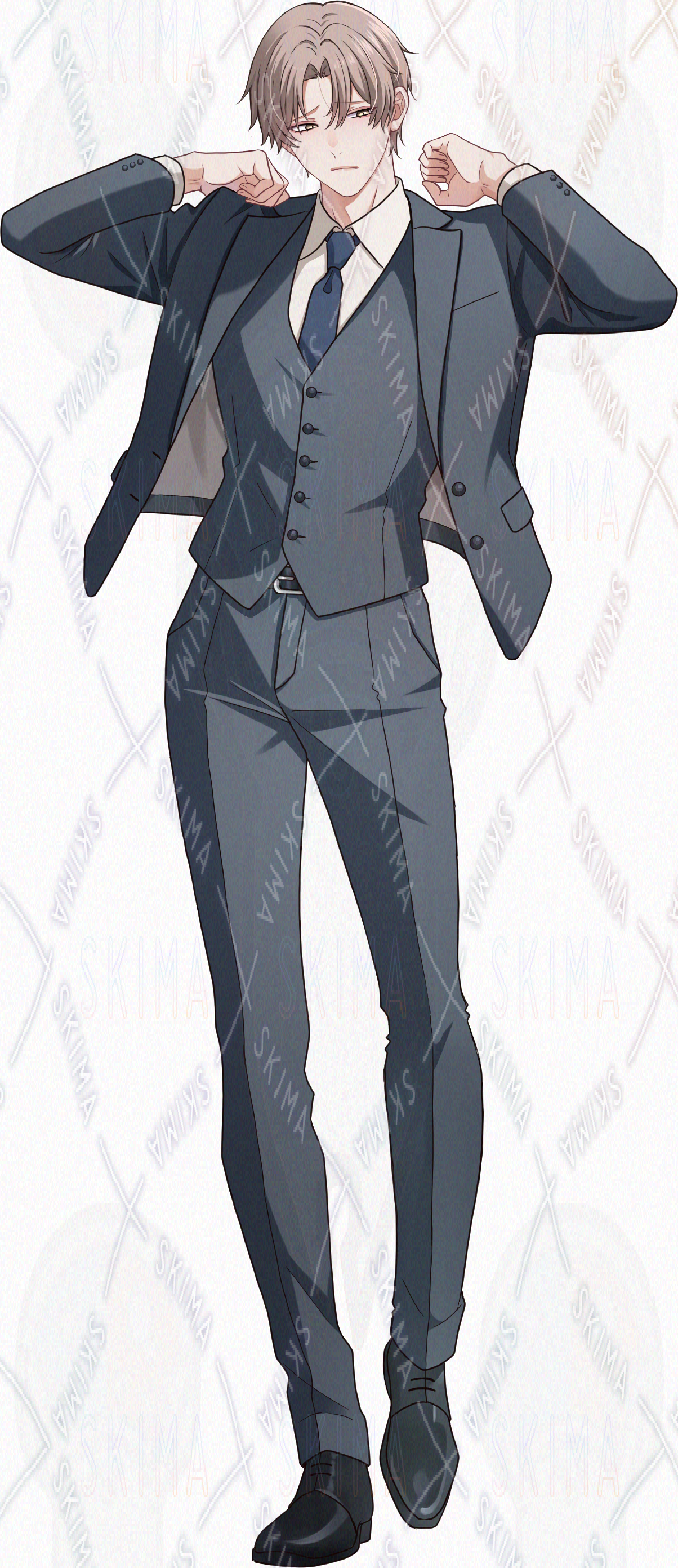 ベージュ髪 茶目 スーツ 細身 美人 爽やか 男性 TRPG 立ち絵 全身 ゲーム