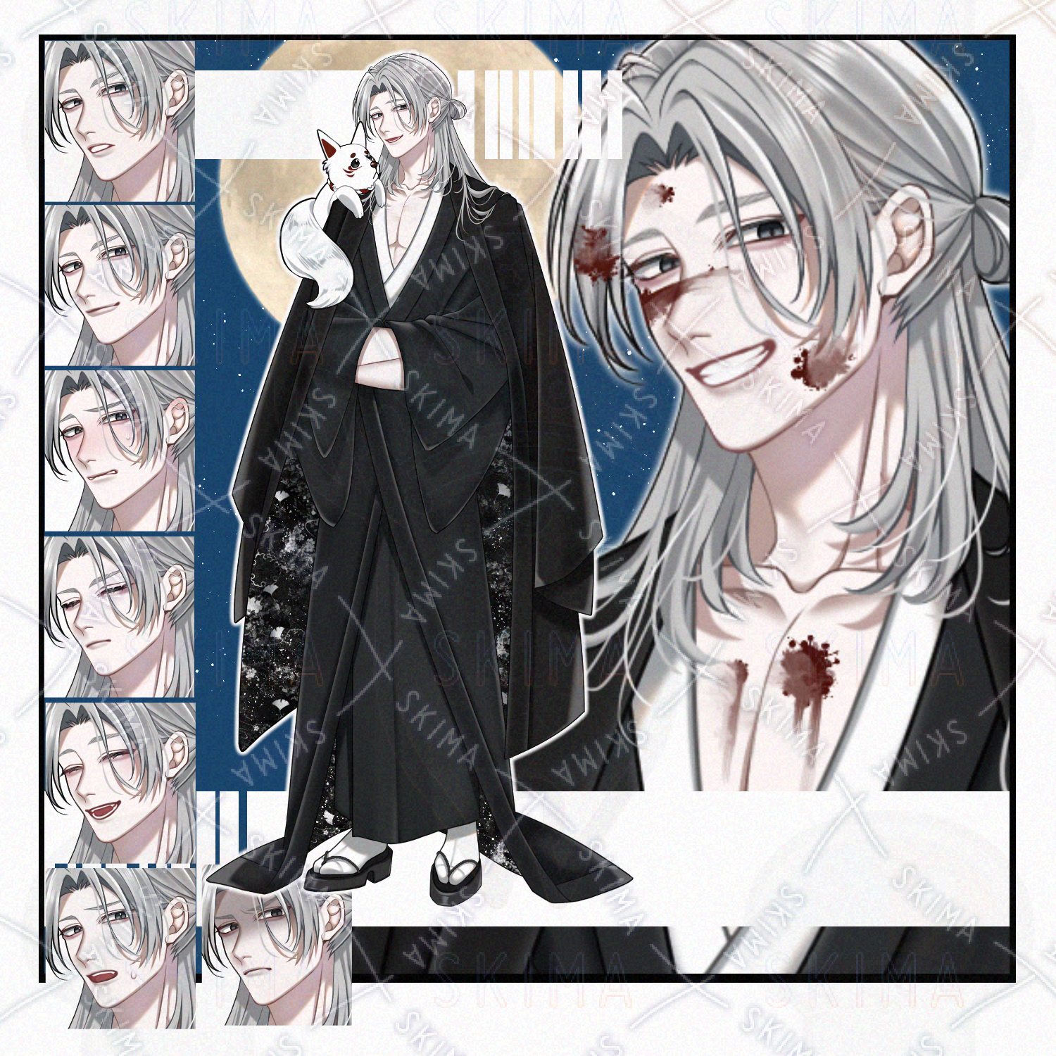 【立ち絵】銀髪/和装男性キャラ【表情9種】