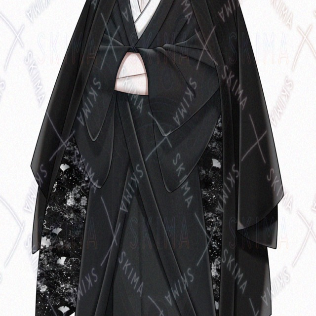 男性/男の子/男性キャラクター/立ち絵/銀髪/白髪/TRPG/全身/ハーフアップ/和装/着物/お団子ヘア/和服/お兄さん/長髪/黒/筋肉質