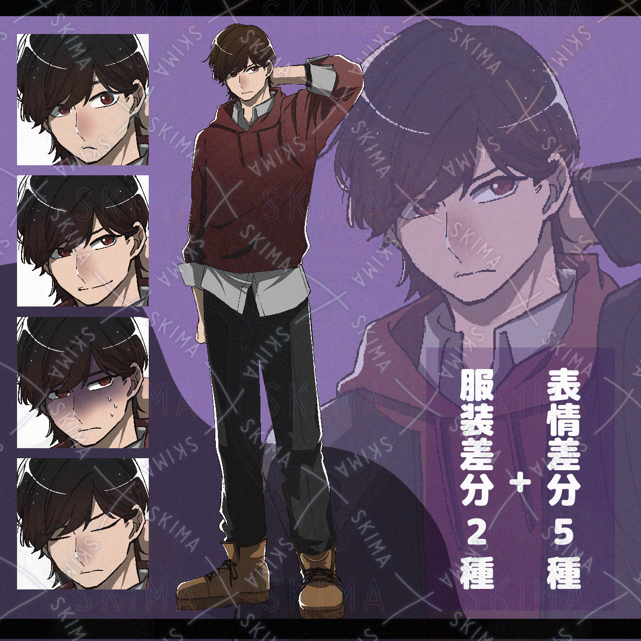《表情差分5種×服装差分2種》パーカー男子