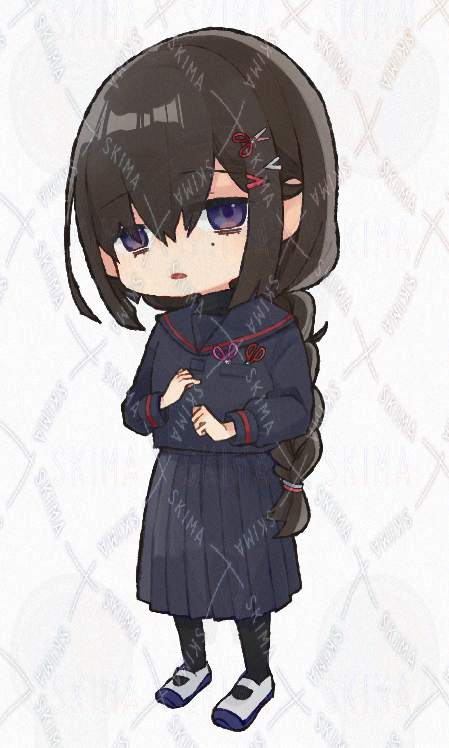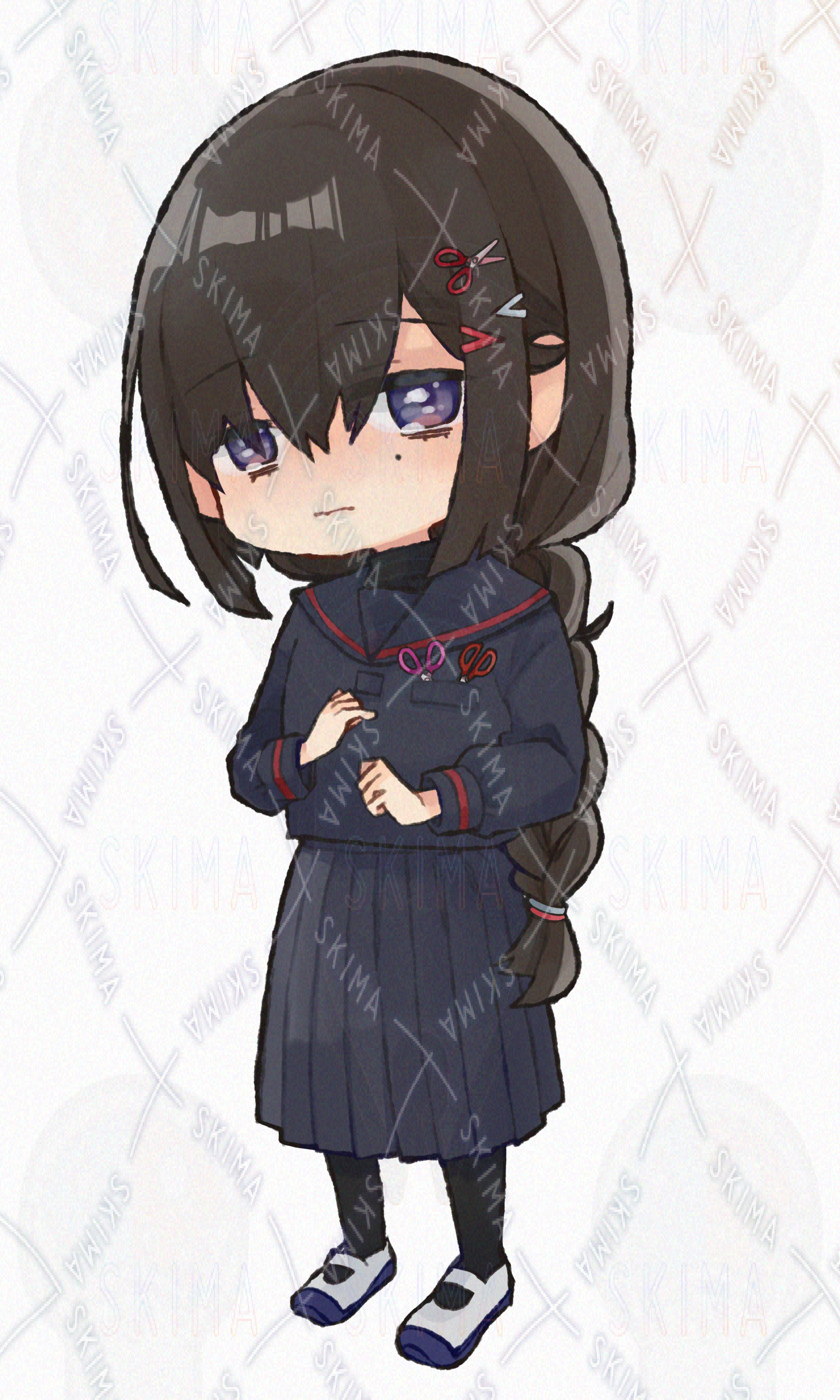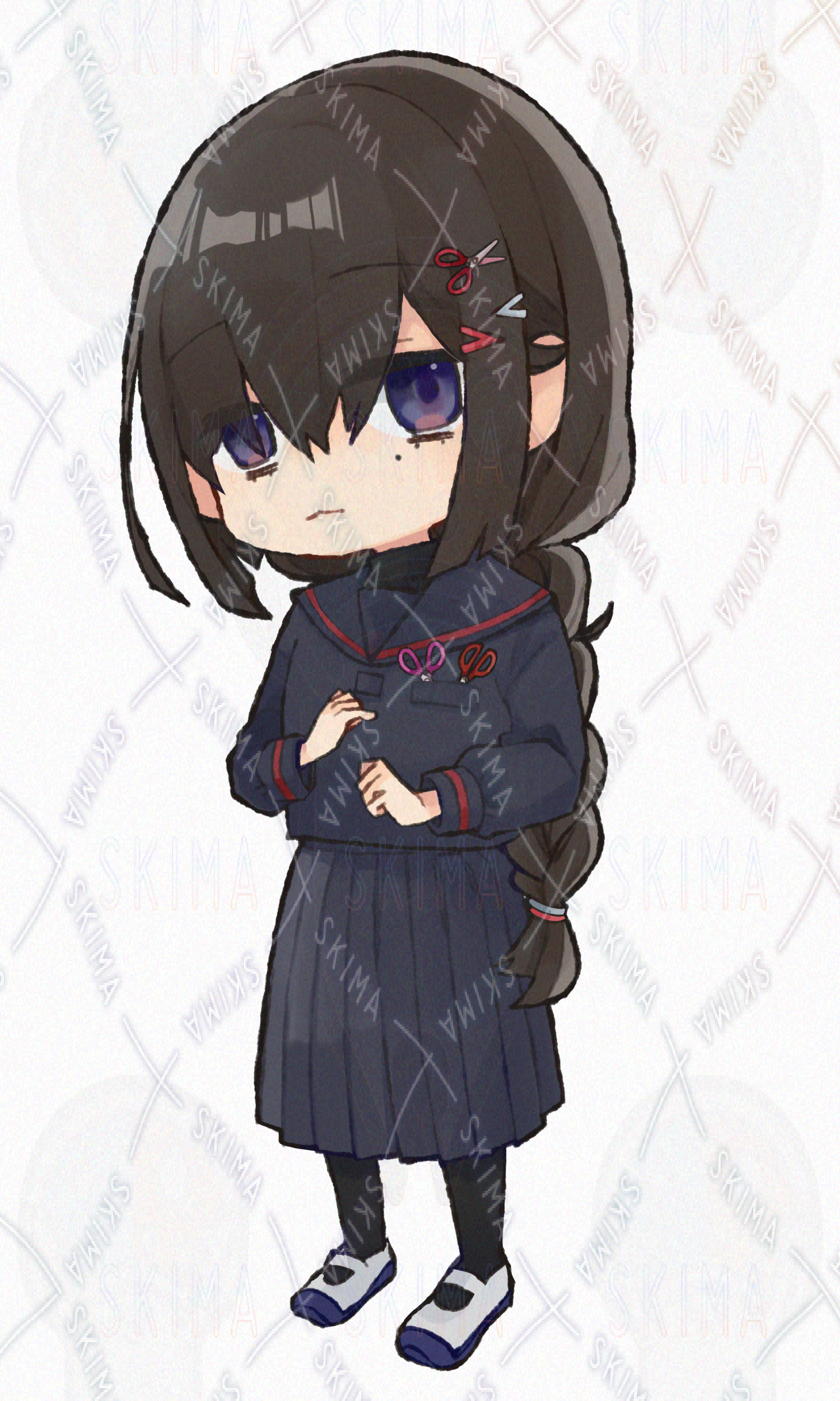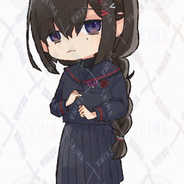 女の子 制服 ジト目 デフォルメ 黒