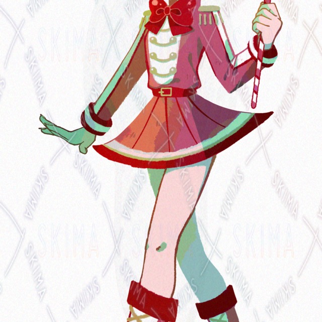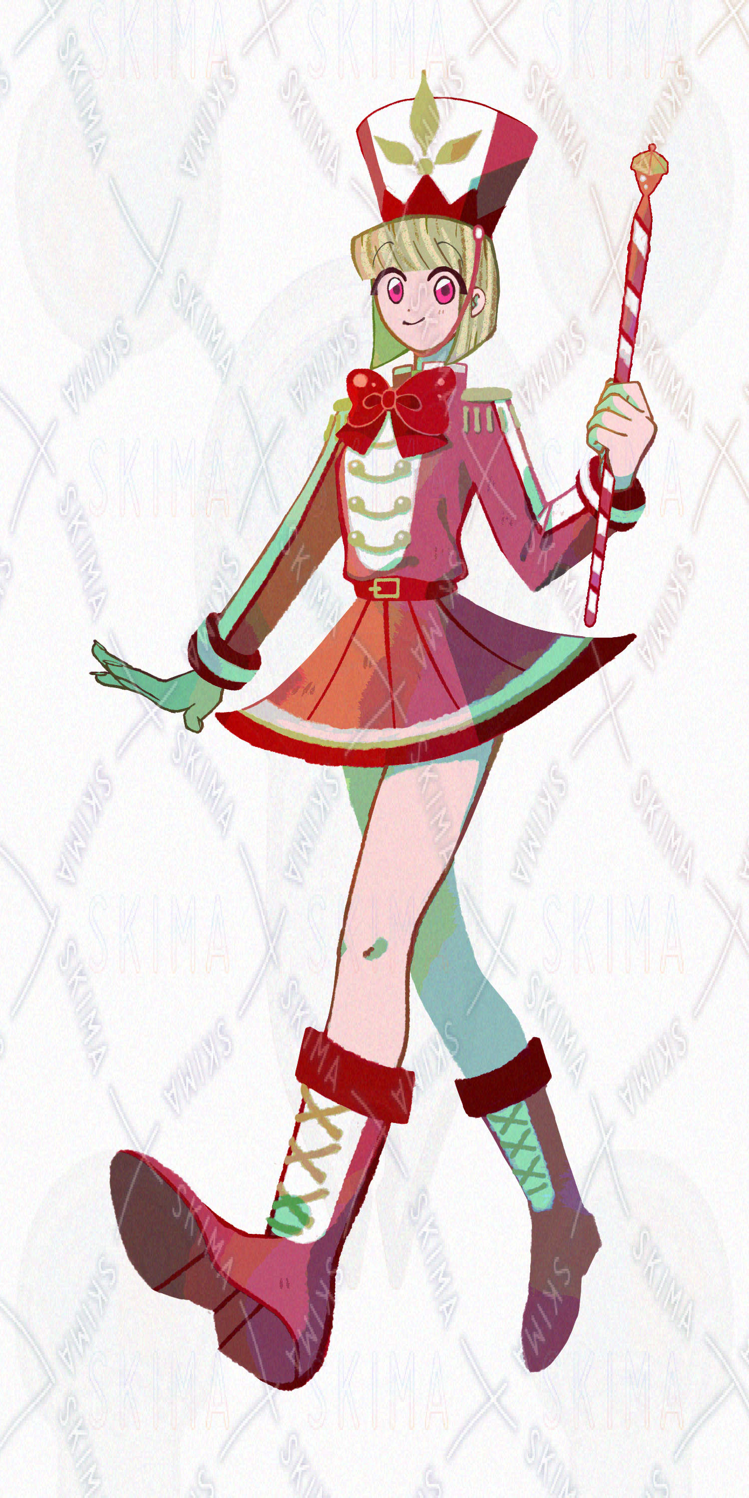 パレード用の兵隊服を着て指揮棒を持った女性です。