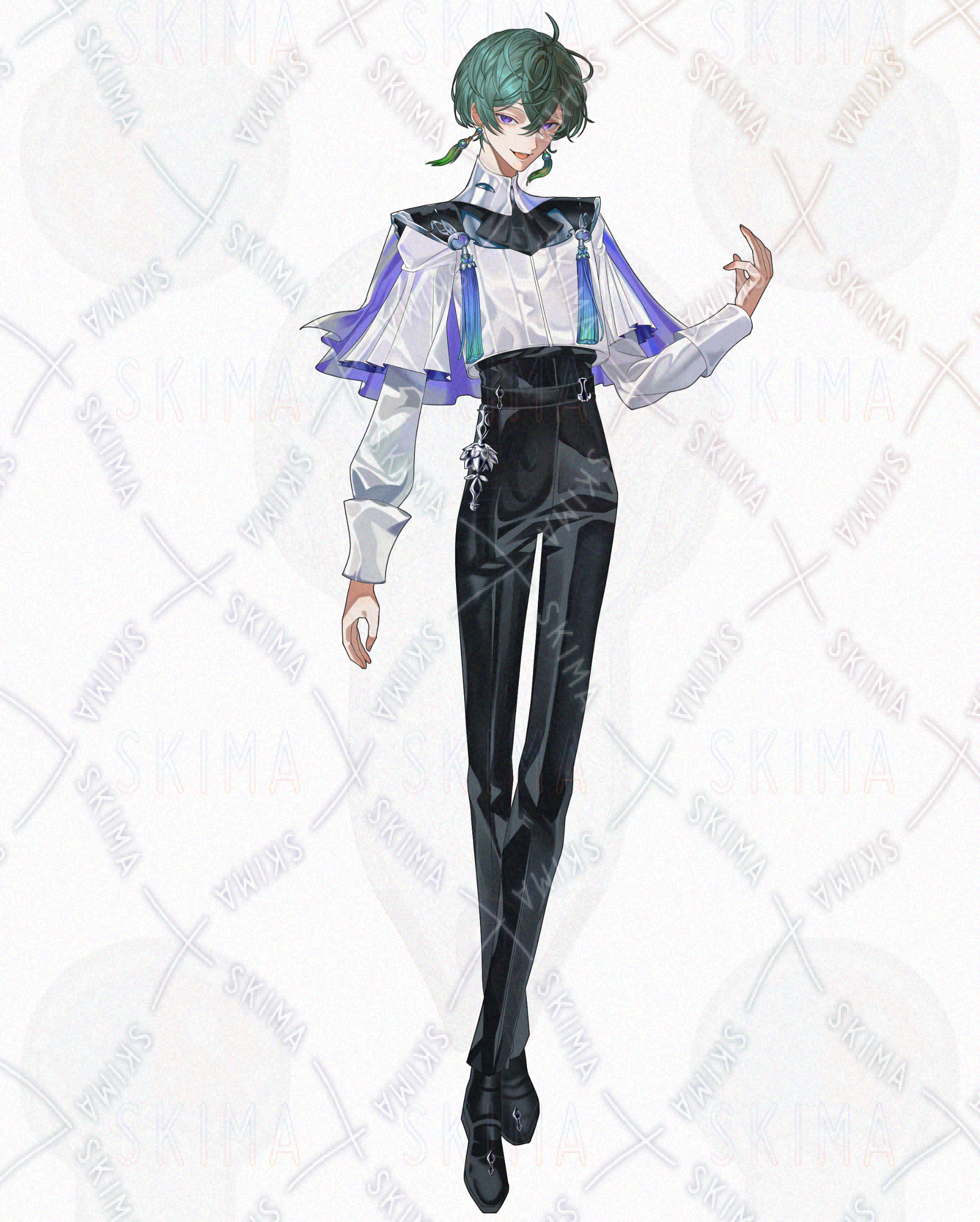 ピーコックカラー・幾何形体の杖・祈祷師または術師、をテーマに創作した青年キャラになります。