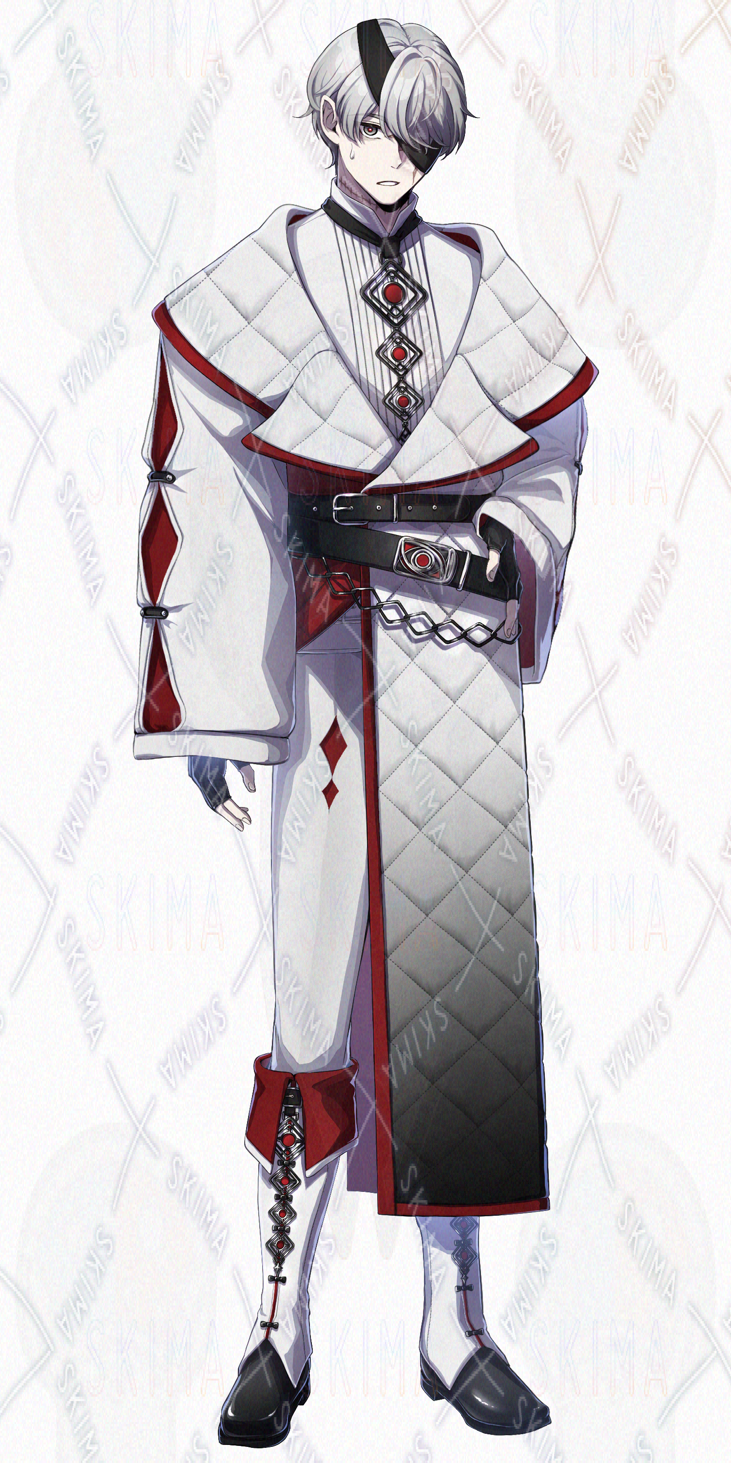 女性/立ち絵/眼帯/ファンタジー/白髪/傷有