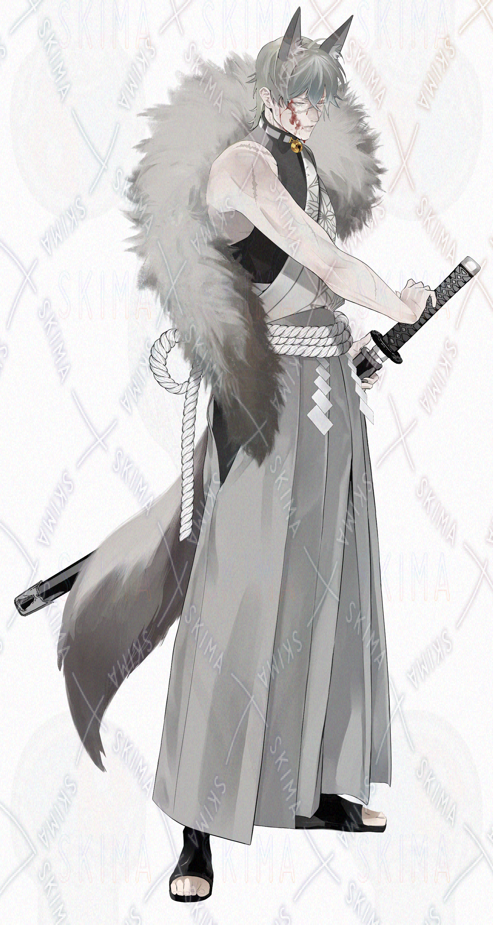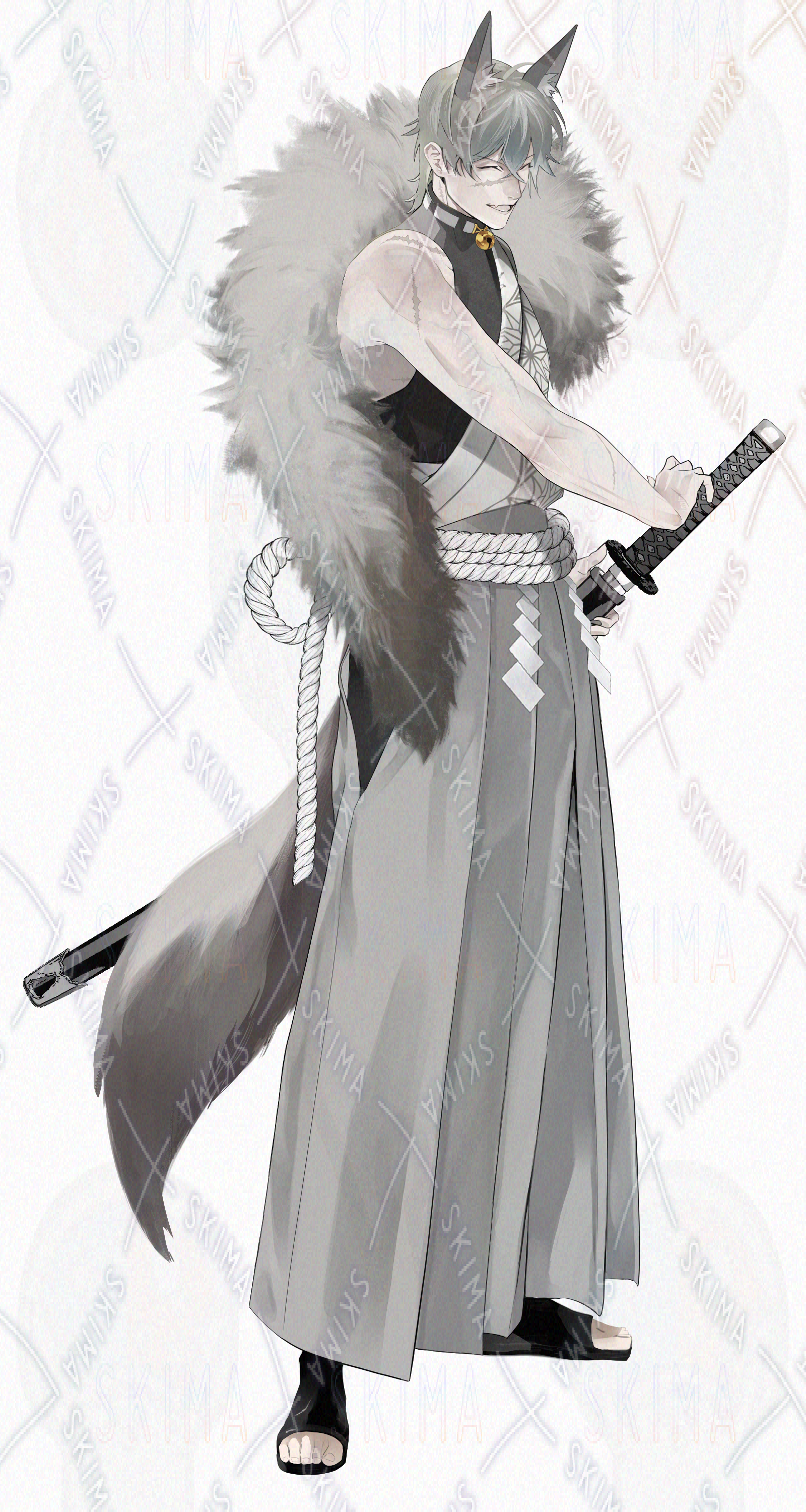 和装/袴/日本刀/大太刀/ケモ耳/武器/八重歯/牙/ケモノ