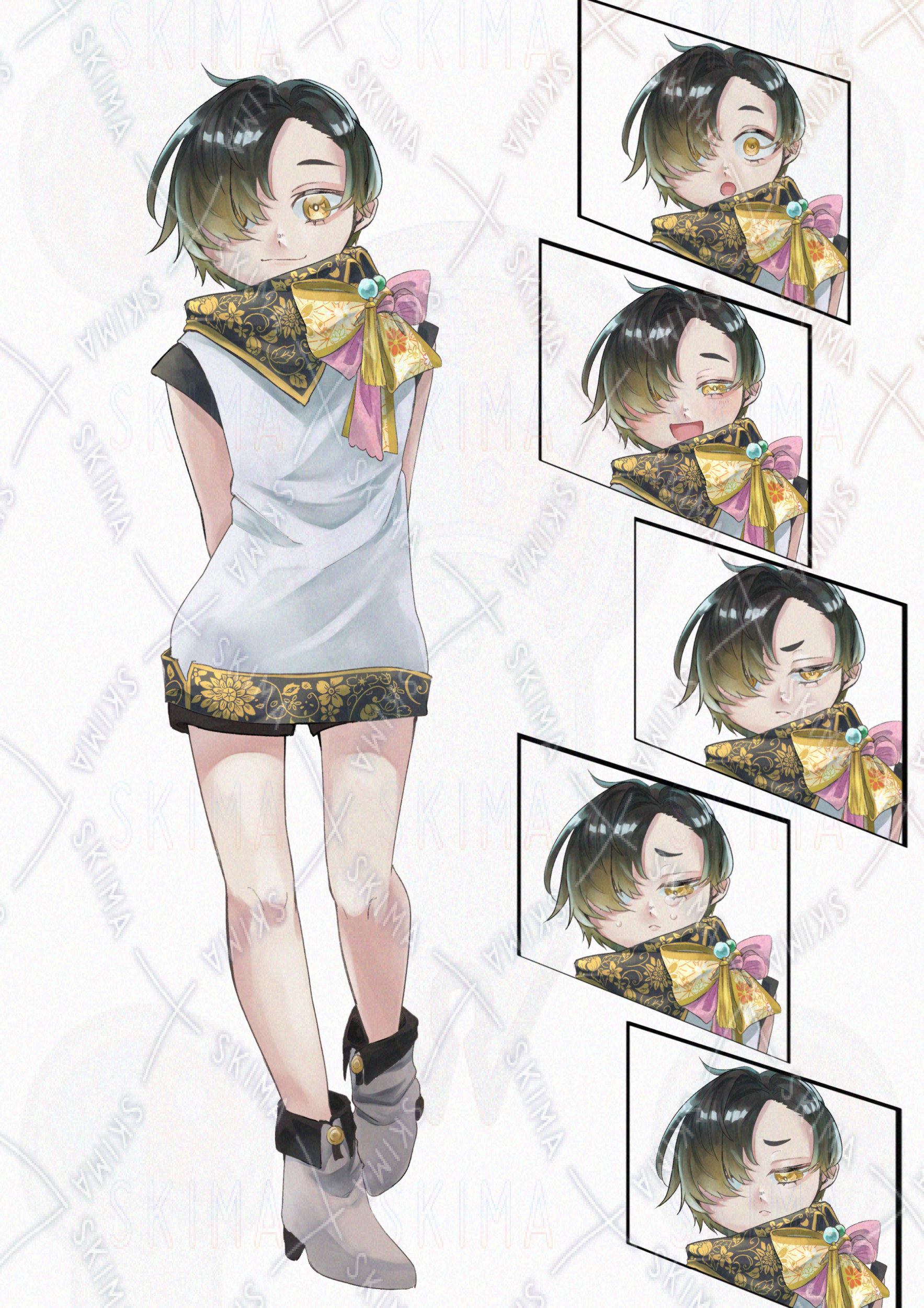 【キャラクター立ち絵】和柄 リボン 表情差分あり