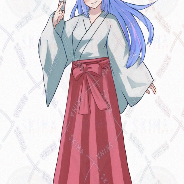 【表情10種】青髪巫女服の女の子【立ち絵】