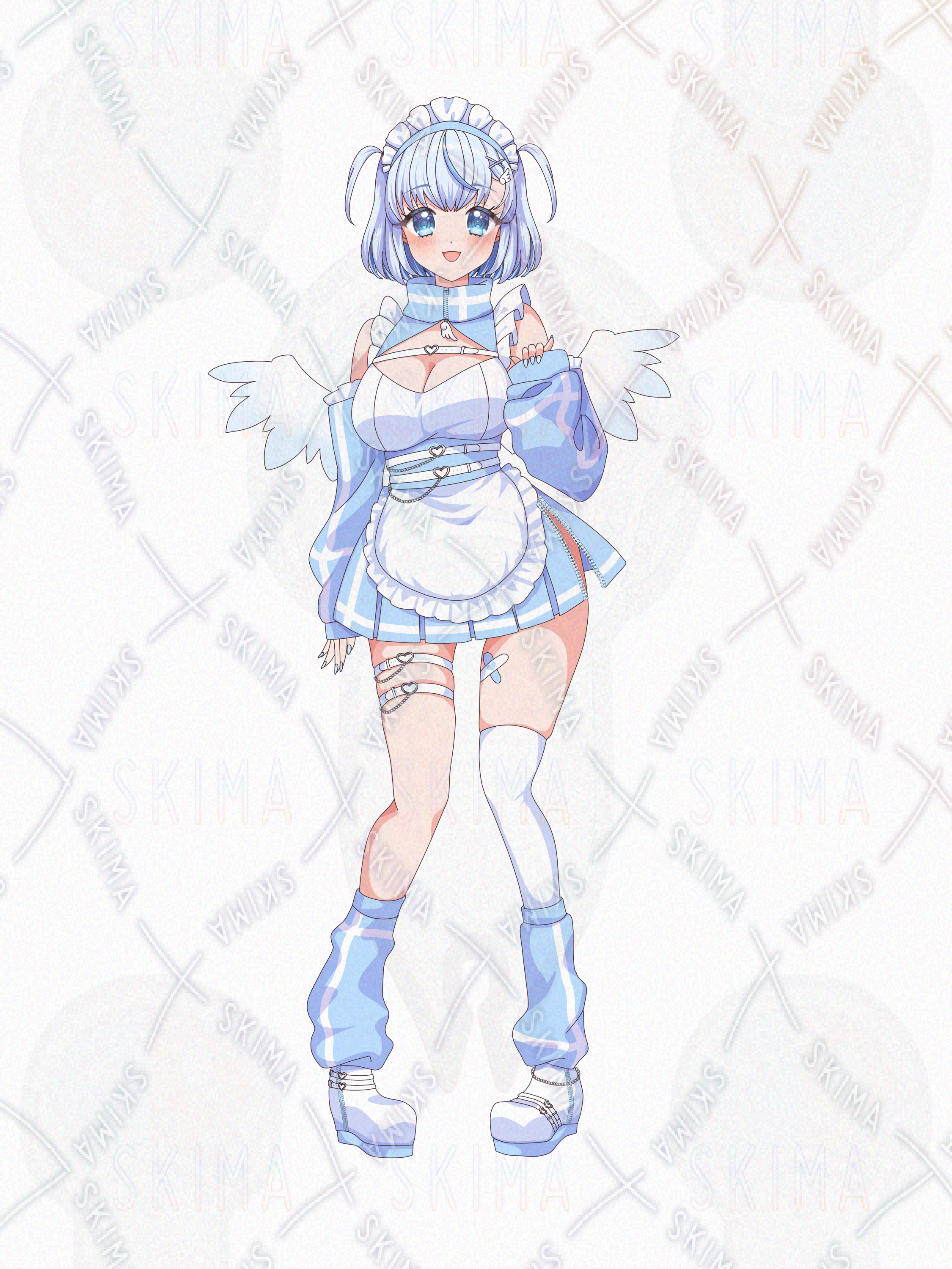 水色 白 天使 ジャージメイド ボブ ハーフツイン ハート ベルト