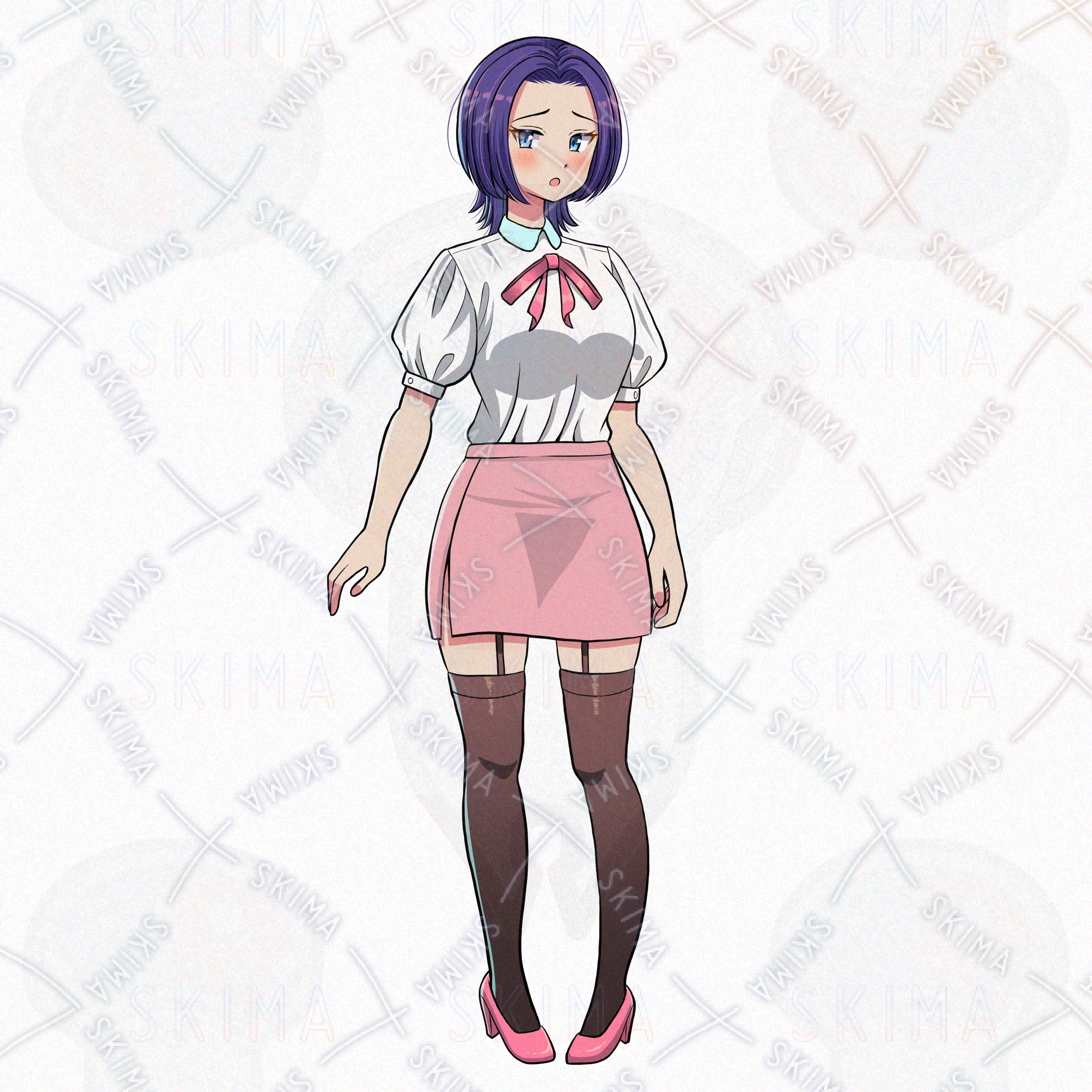 女/少女/女性/ショートヘア/マッシュウルフ/タイトスカート/タイツ/ヒール