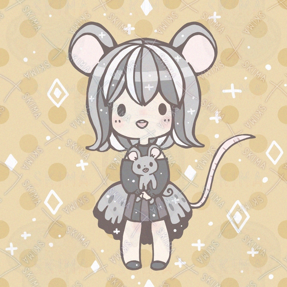 ネズミの女の子とぬいぐるみ