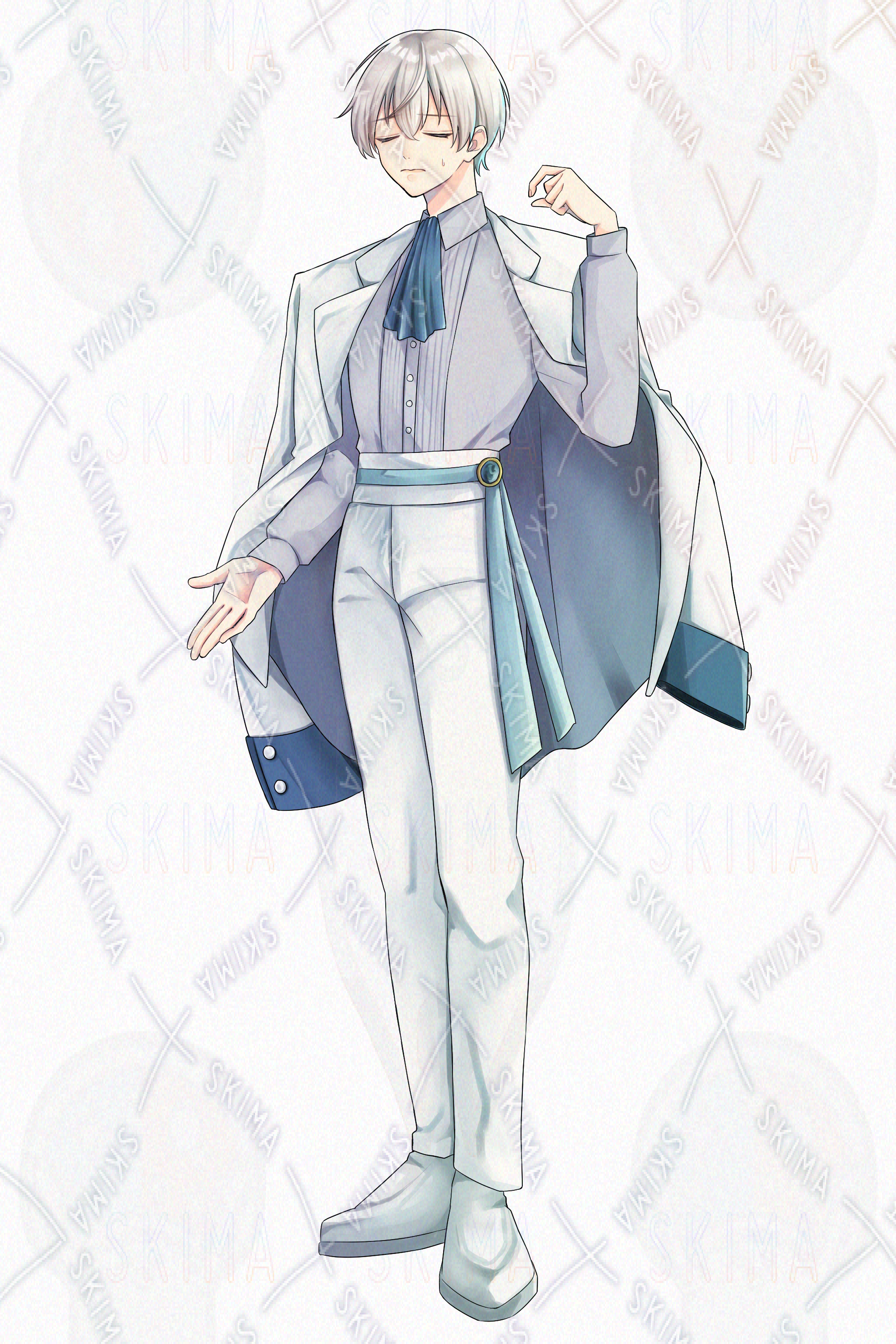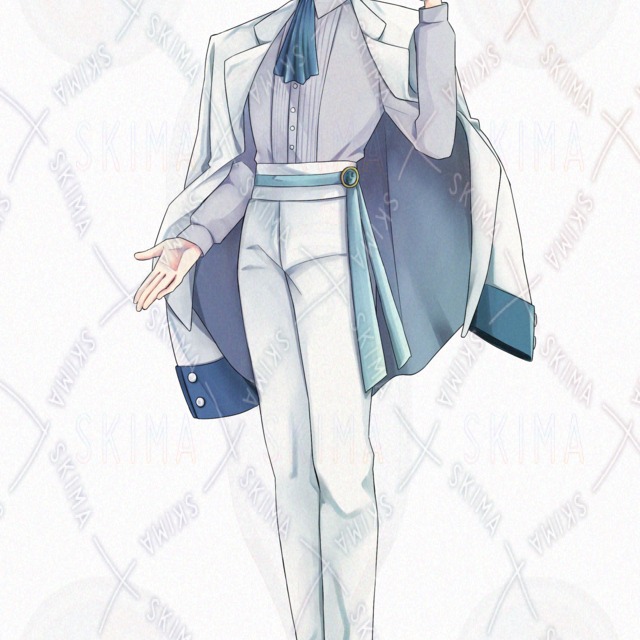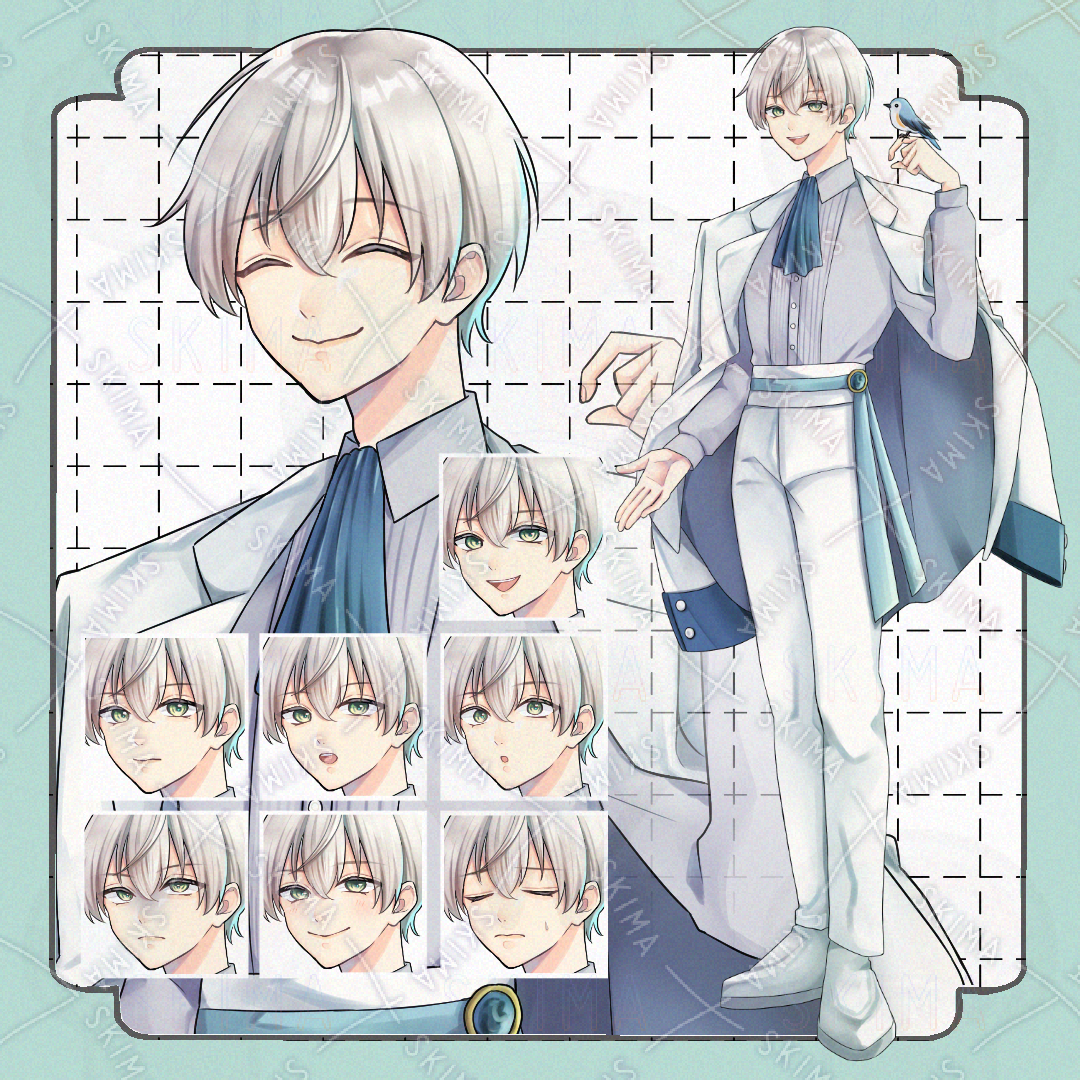 肩掛けジャケット/銀髪/青い鳥