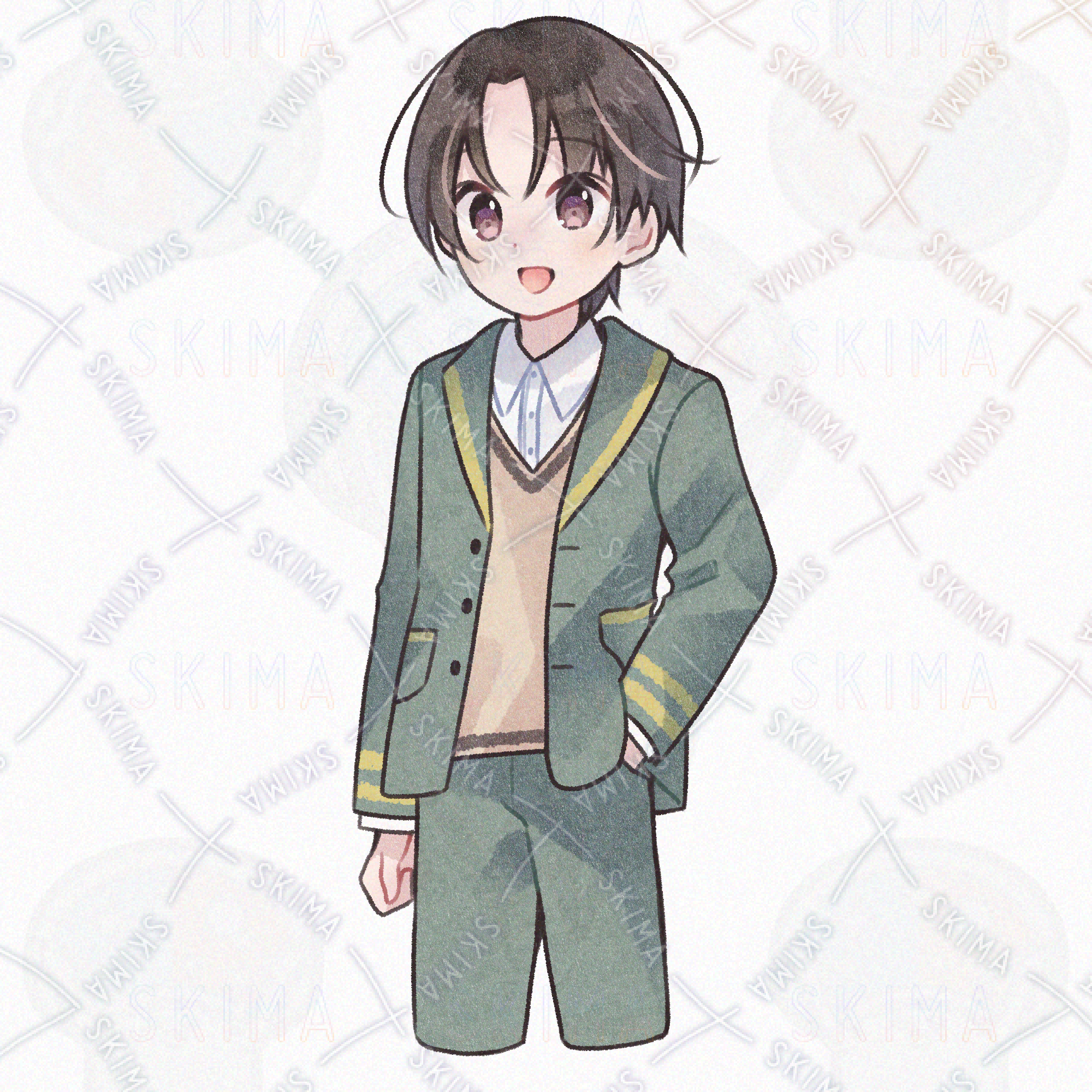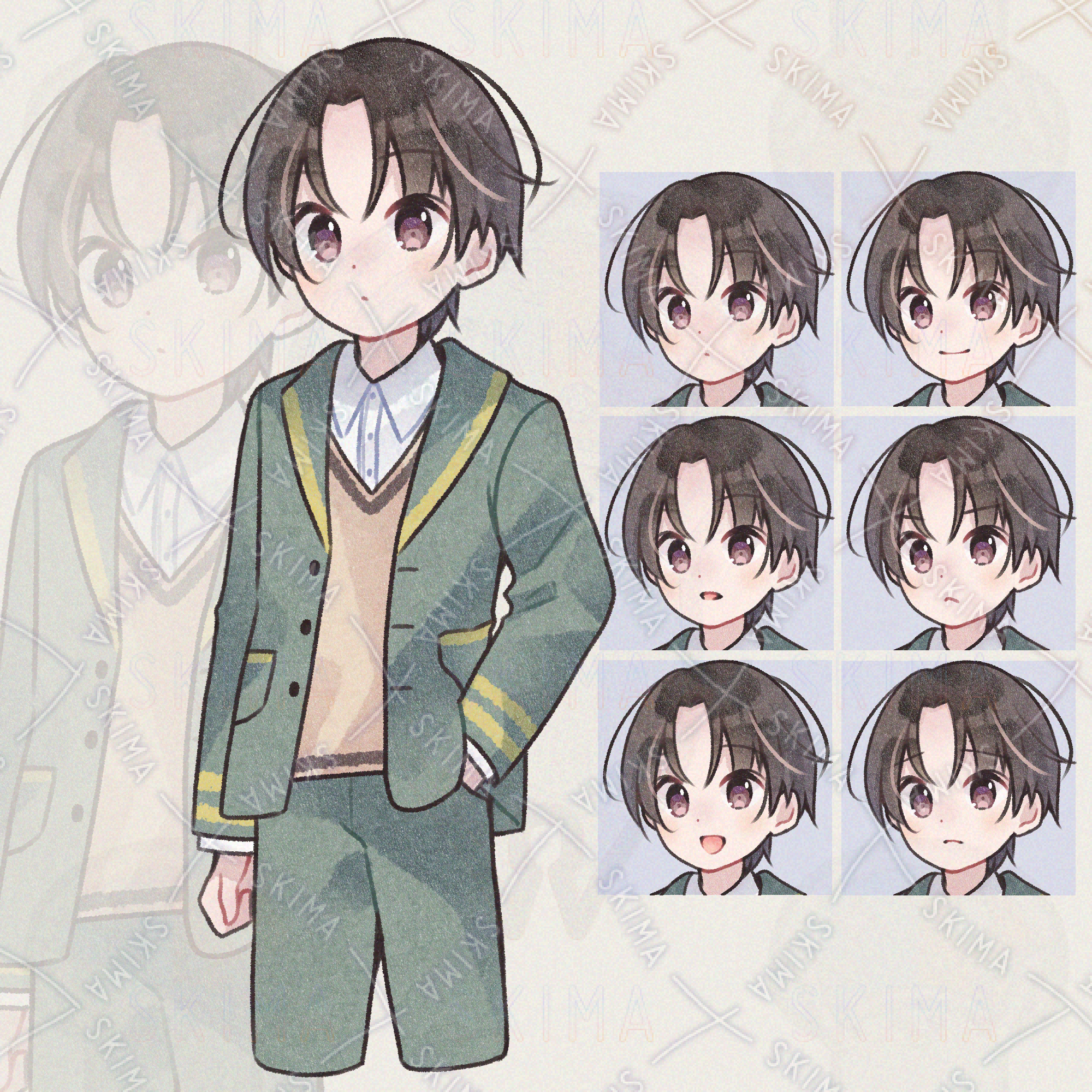 制服×ゆるかわ男子【立ち絵/腿上/商用利用可】/ 表情全6種 A