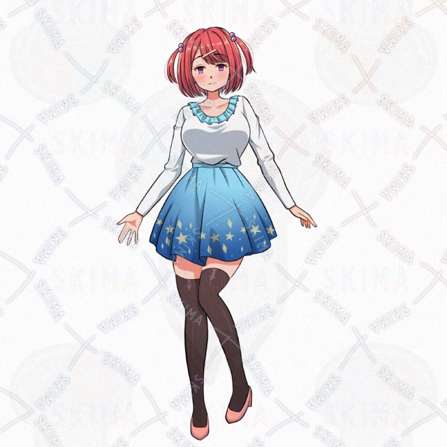 女の子/少女/スカート/ハーフツインテール/ボブカット/現代/私服/ヒール