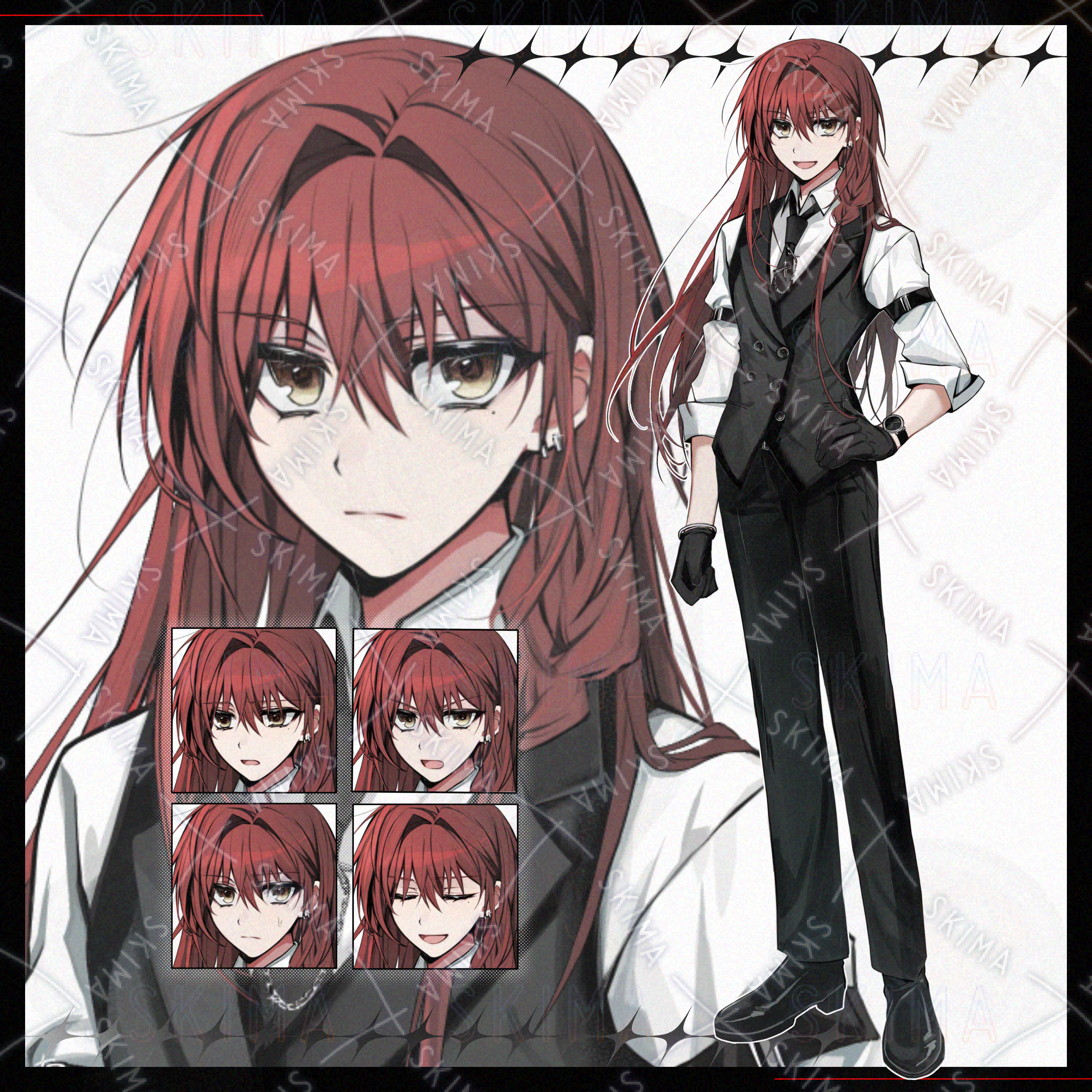 【Adopt】中性的な赤髪スーツキャラ