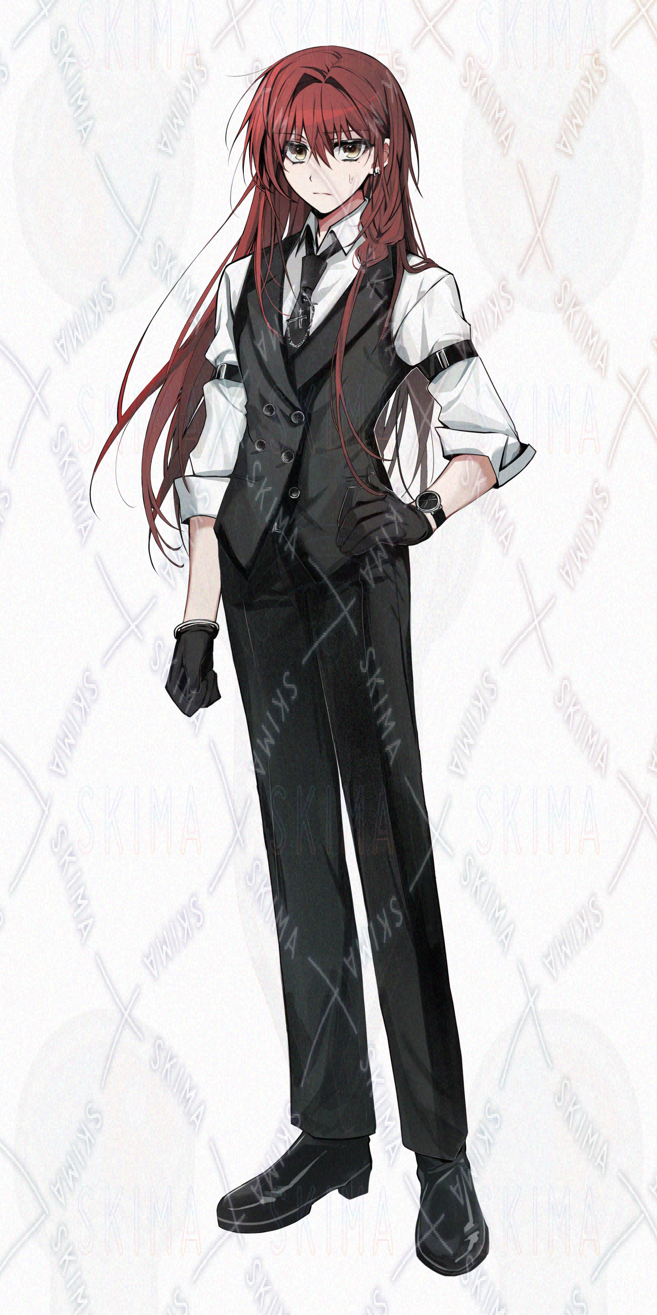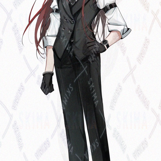 女の子/中性/スーツ/黒手袋/赤髪/ベルト/女の子キャラクター/立ち絵/TRPG/全身/ロング/ベスト