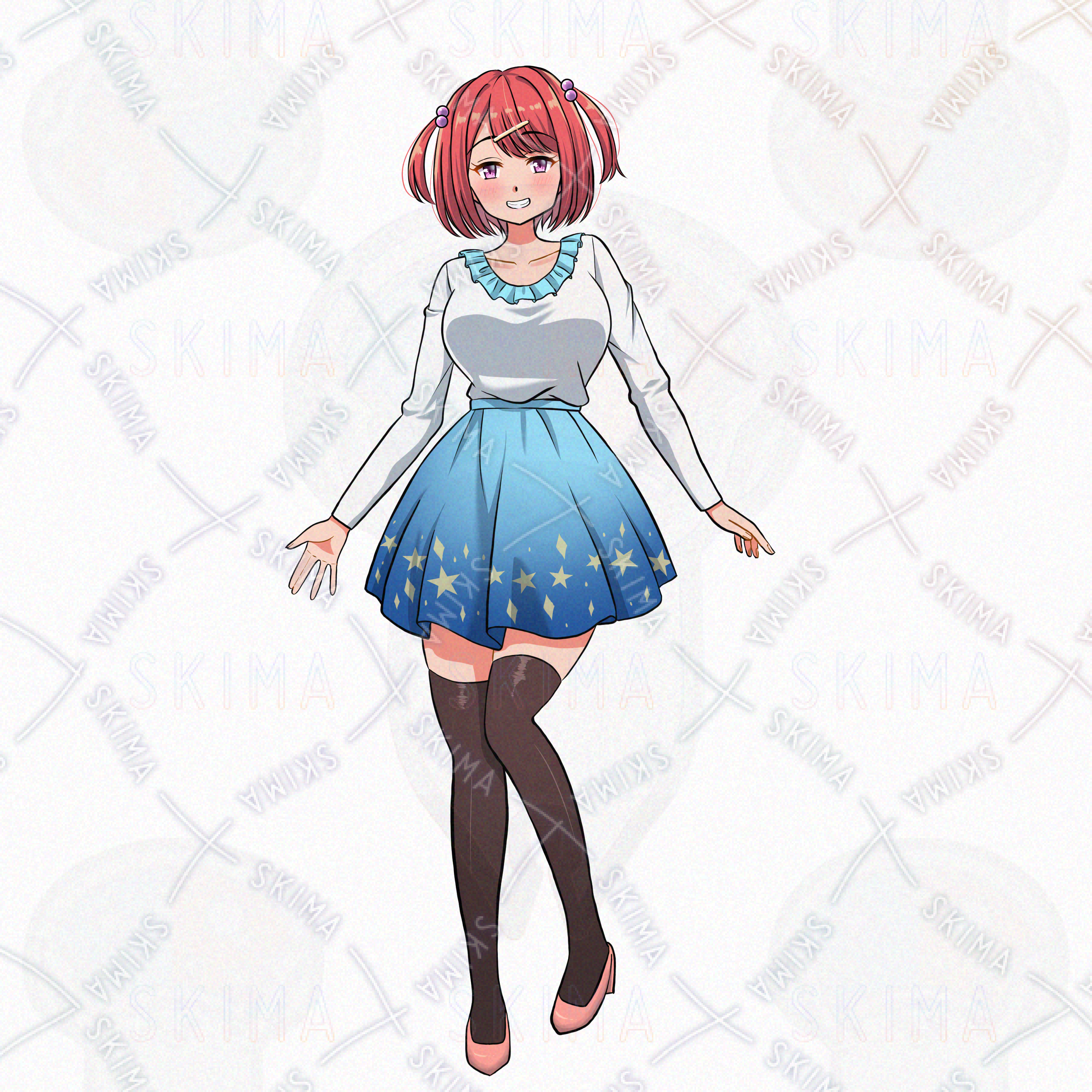 女の子/少女/スカート/ハーフツインテール/ボブカット/現代/私服/ヒール