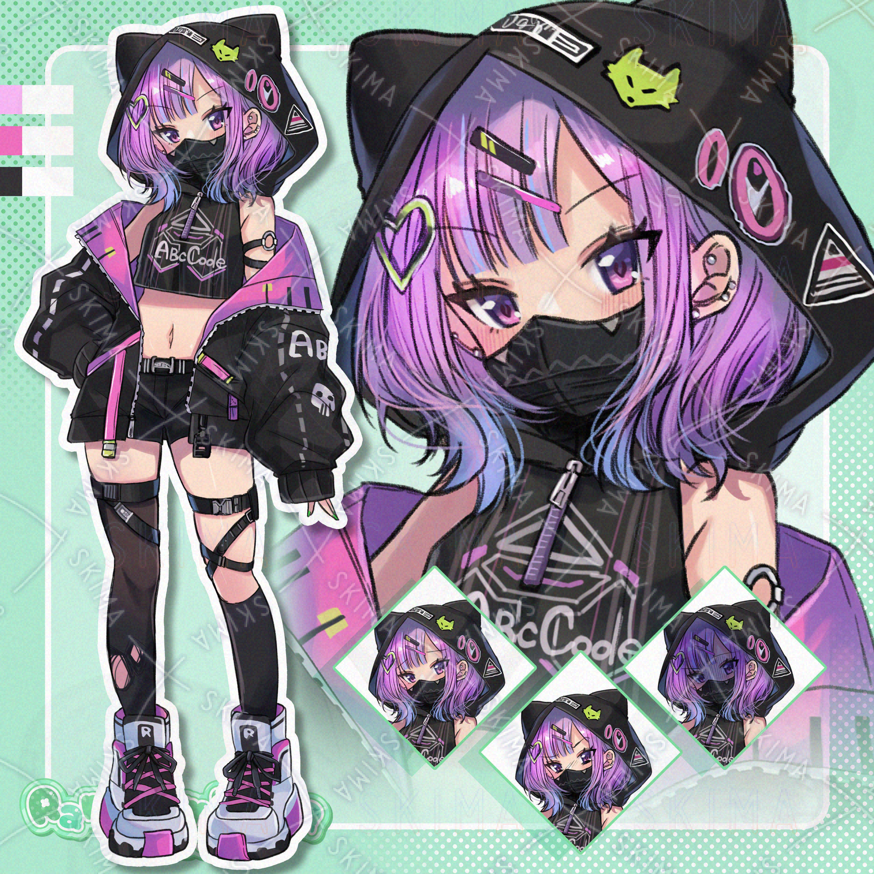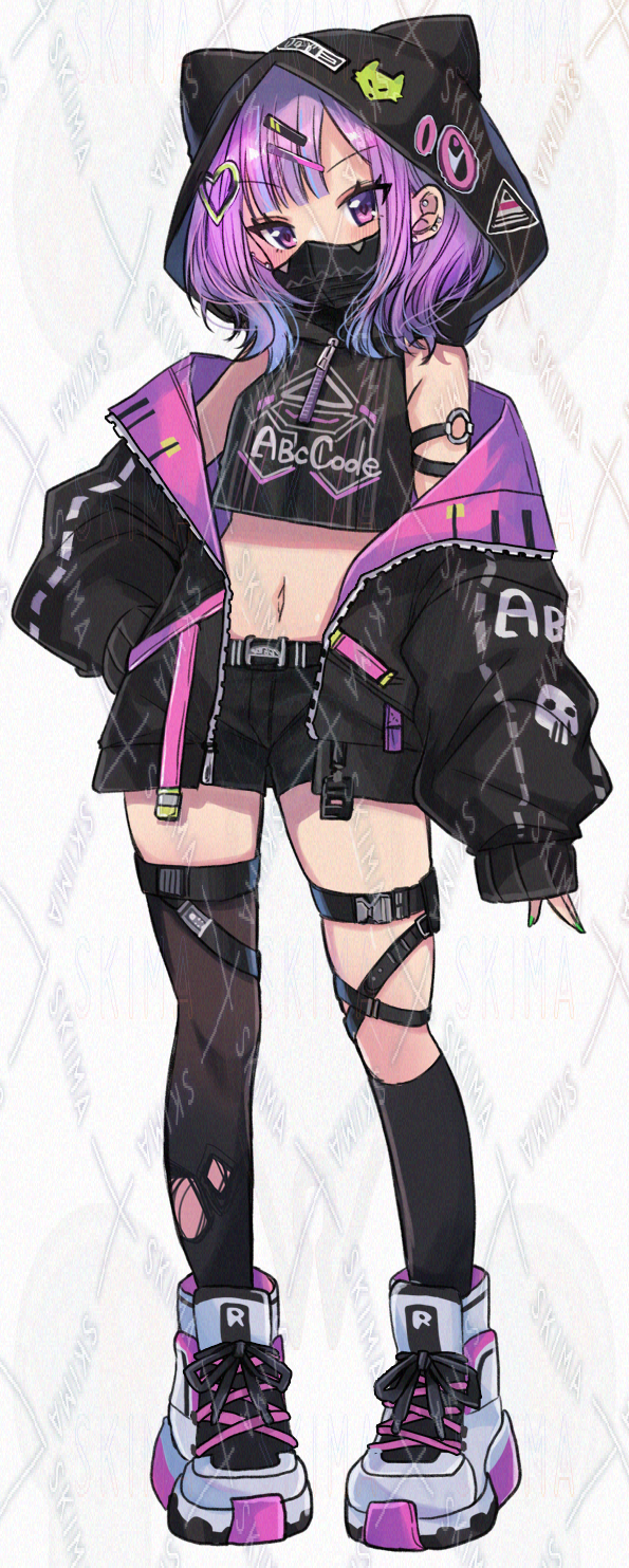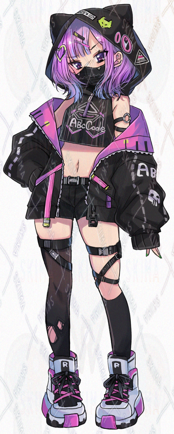女/大人/子供/マスク/ジャケット/へそ出し/生足/絶対領域/サイバーパンク/現代/日本/異世界/ファンタジー/SF/現代/未来
