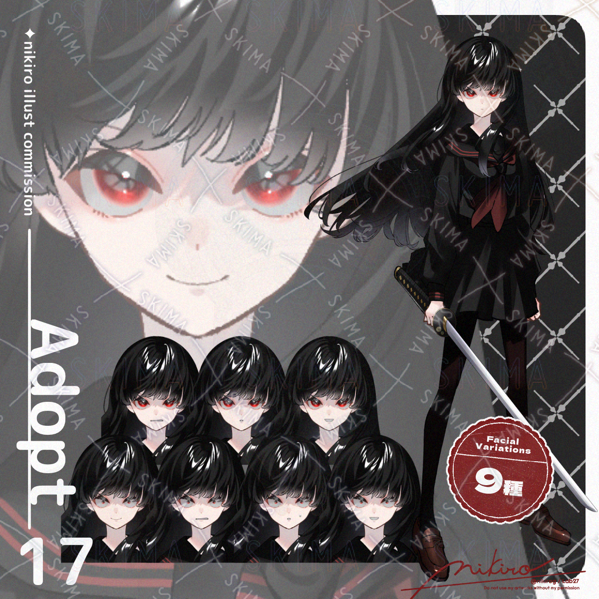 女子高生 / JK / セーラー服 / ロングヘア / 黒髪 / 長髪 / 日本刀 / 赤目 / つり目