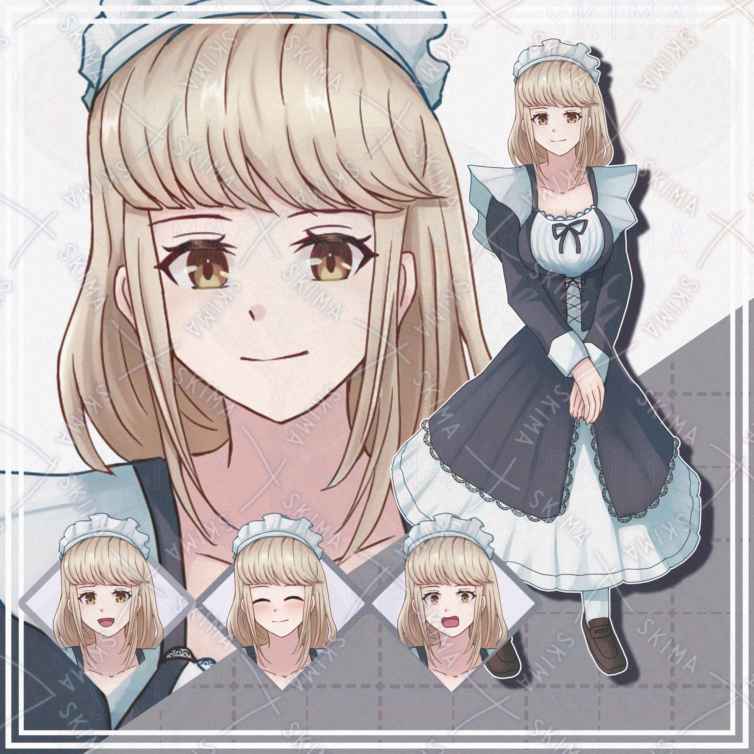 【表情10種】メイド服の金髪女性【立ち絵】