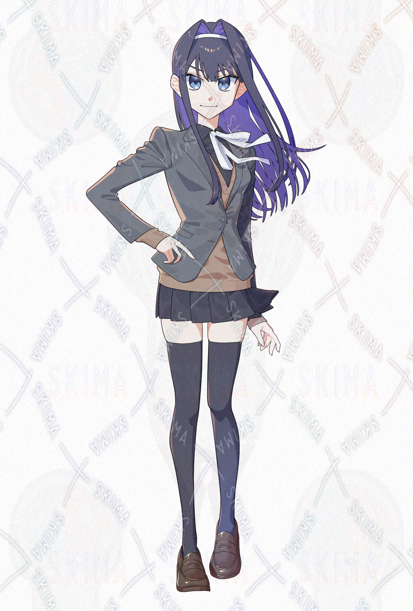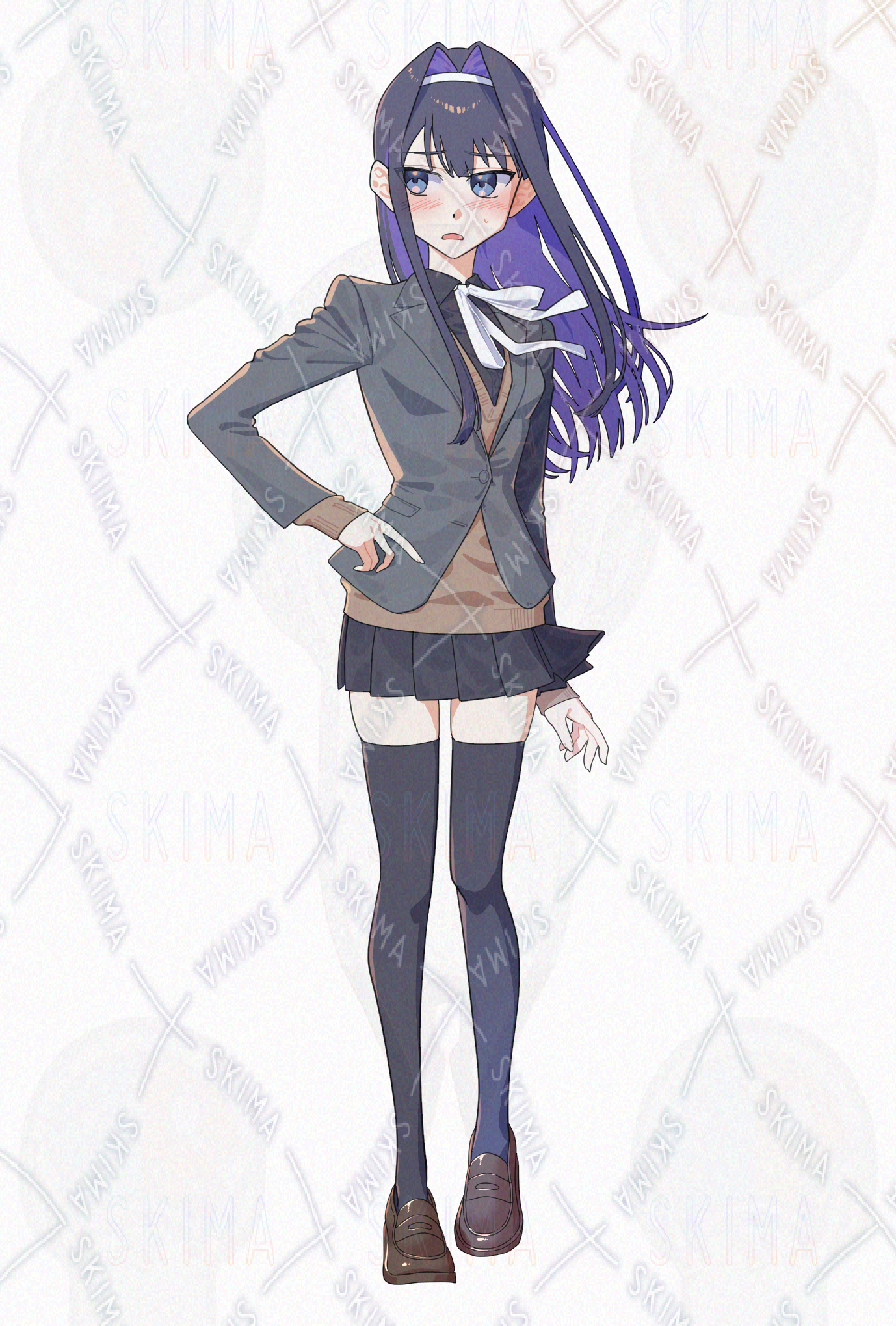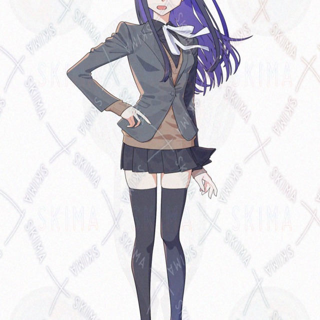 長い黒髪の女子高生の立ち絵イラストです。