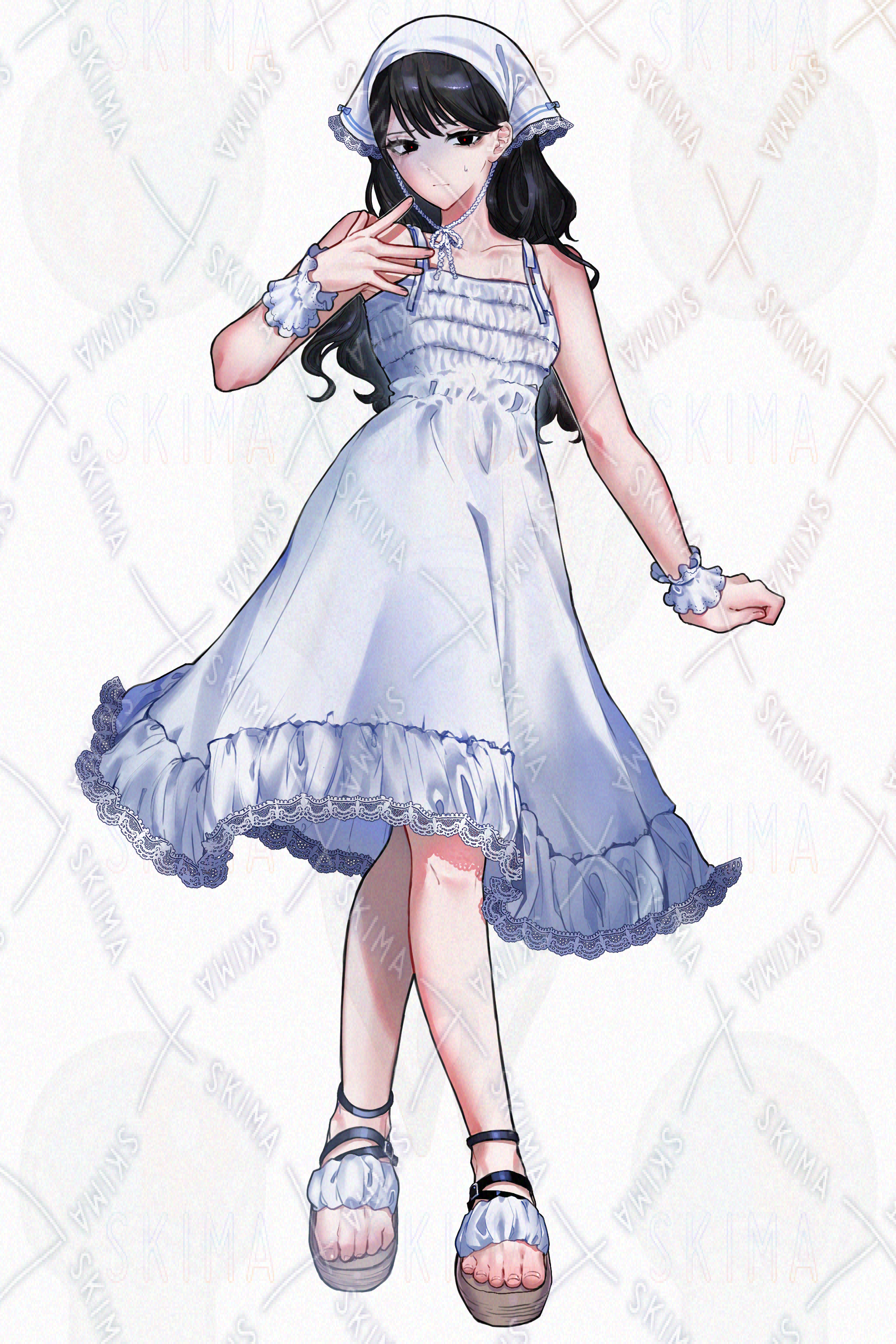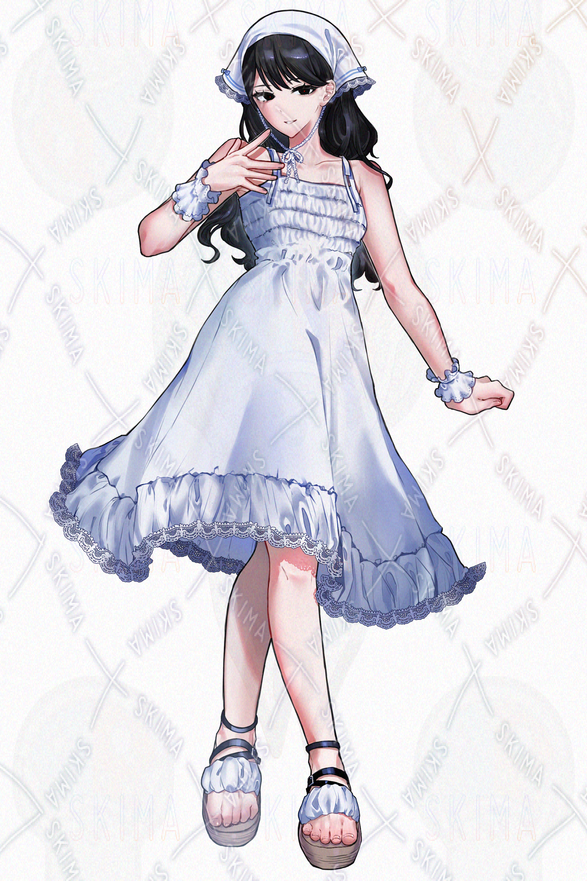 白いワンピースを着てバンダナをつけた少女です。キャラ設定はご自由に行ってください。