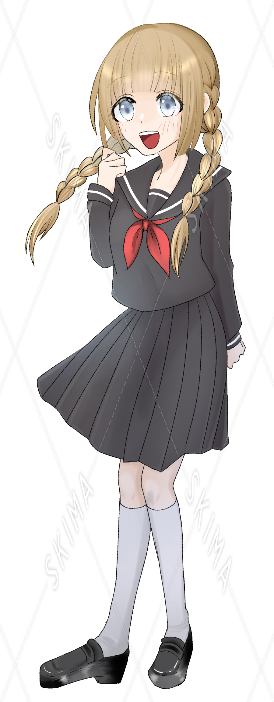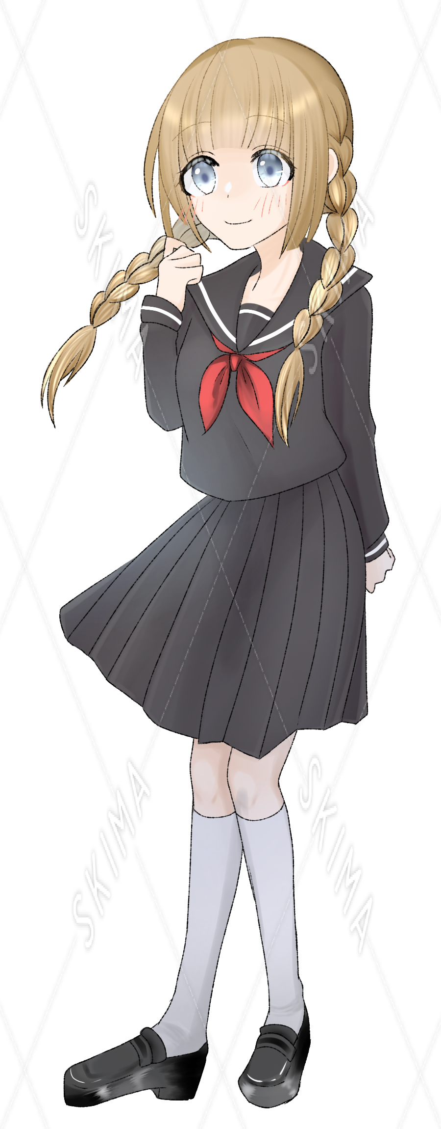 黒セーラー服に三つ編みの少女 立ち絵