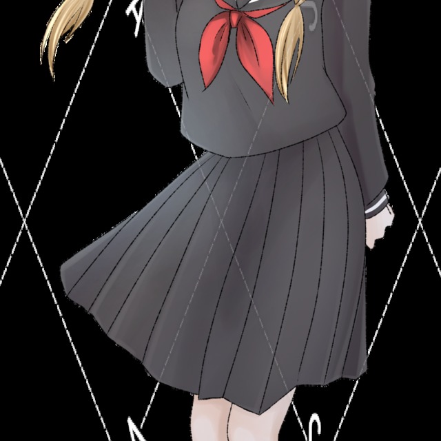 黒セーラー服に三つ編みの少女の立ち絵です。