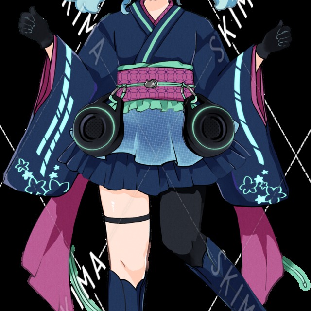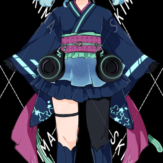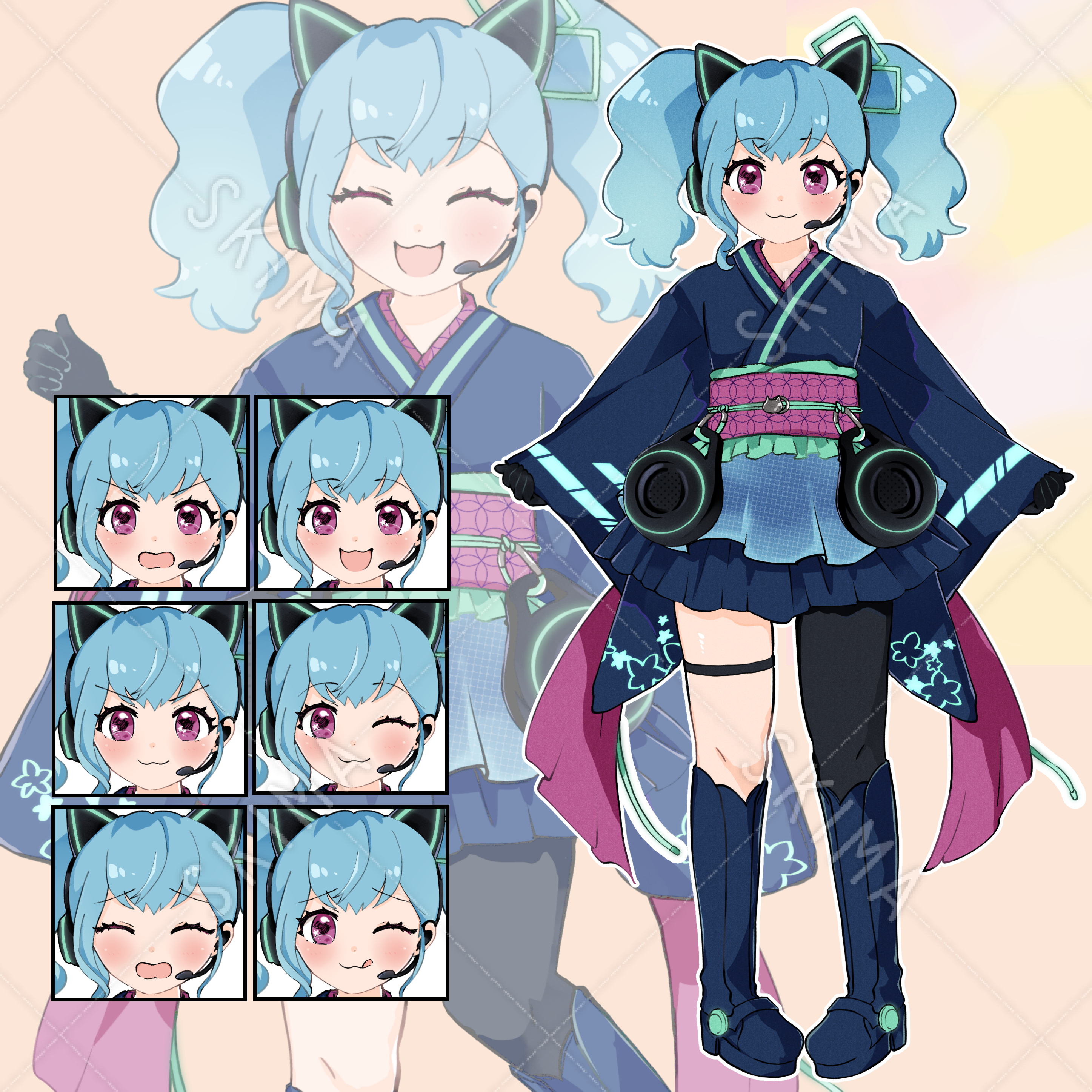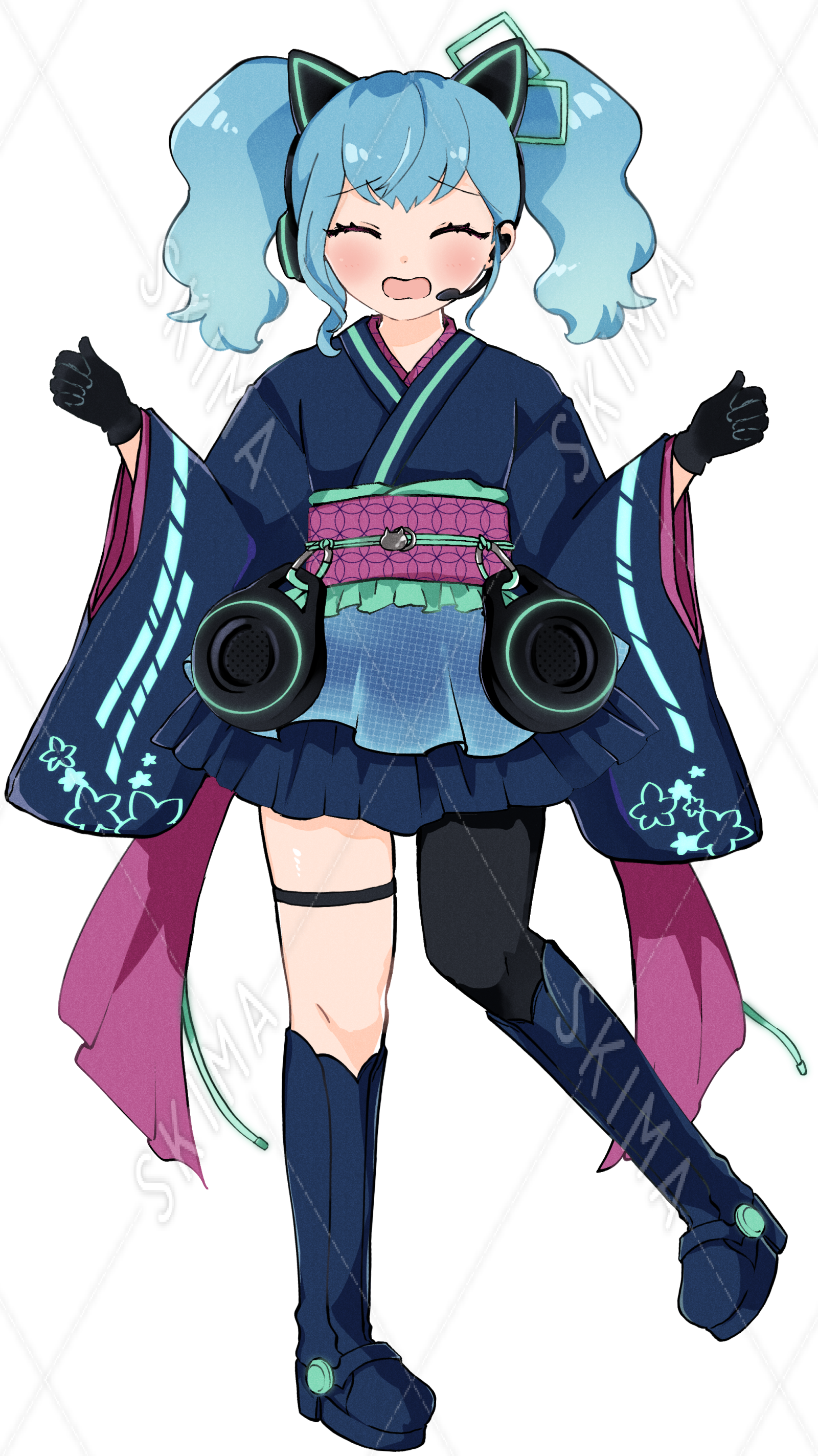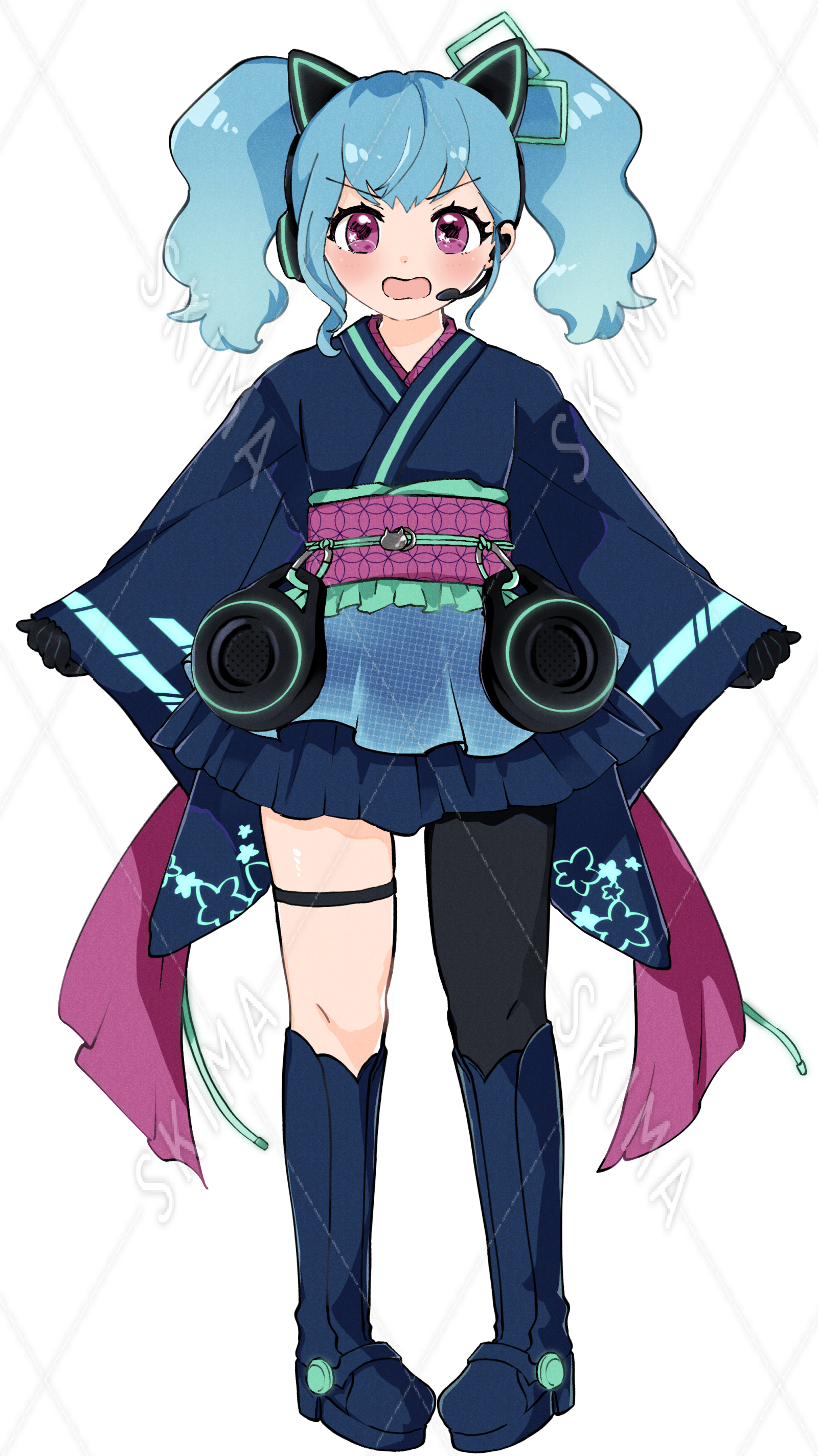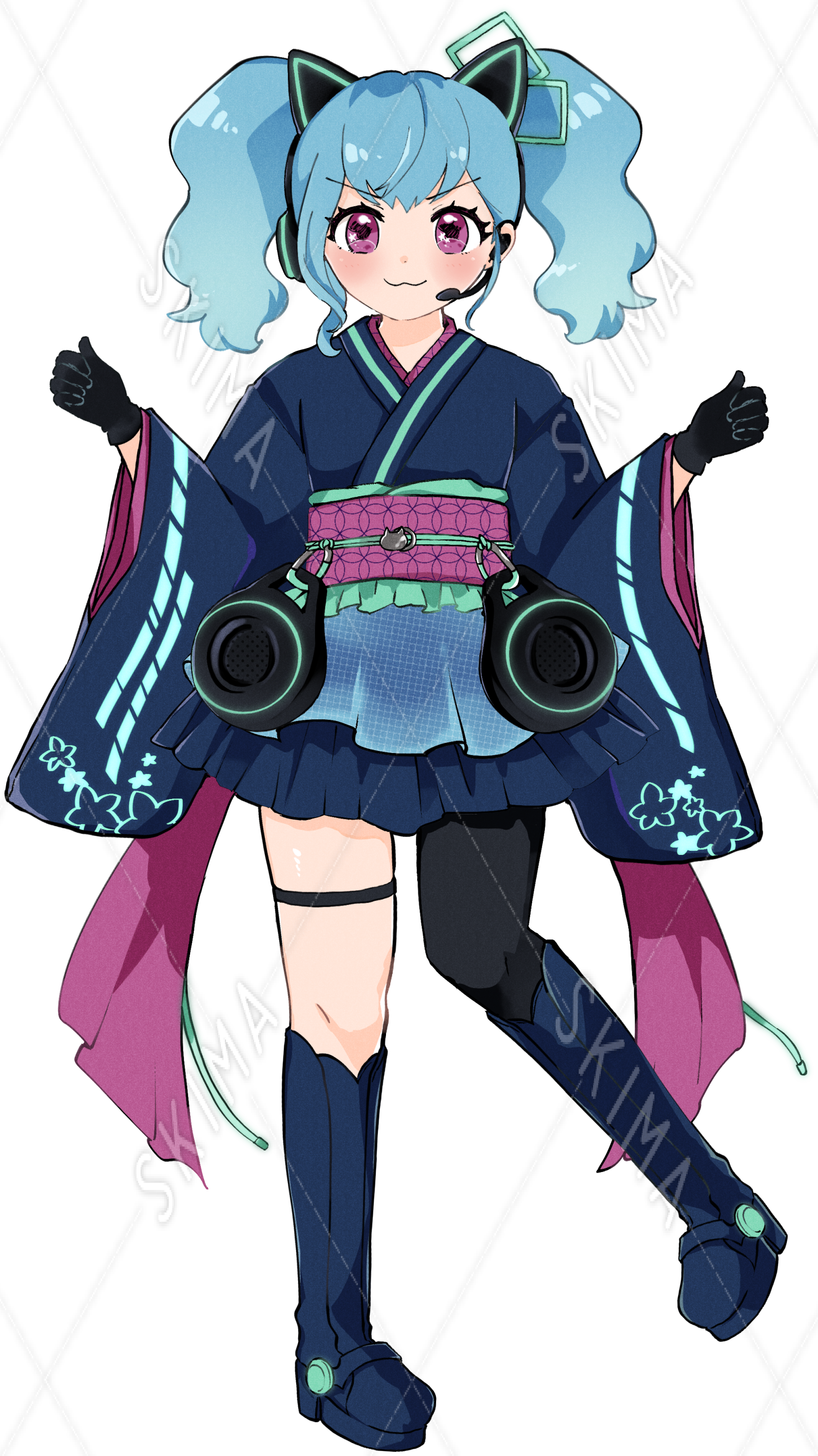着物 和ドレス サイバー ツインテール ネコミミヘッドホン 立ち絵 TRPG