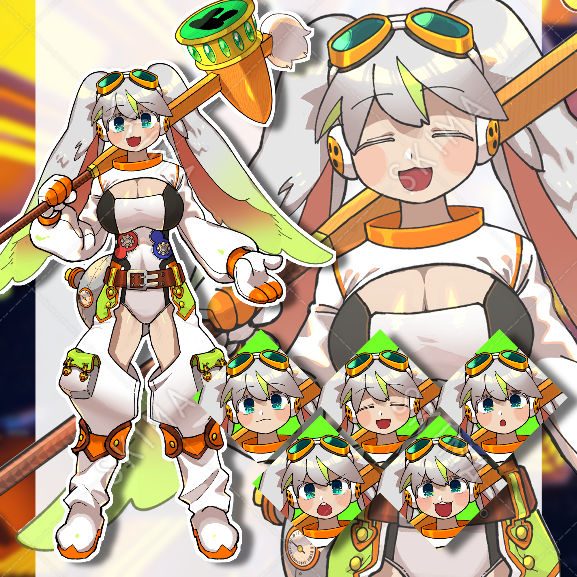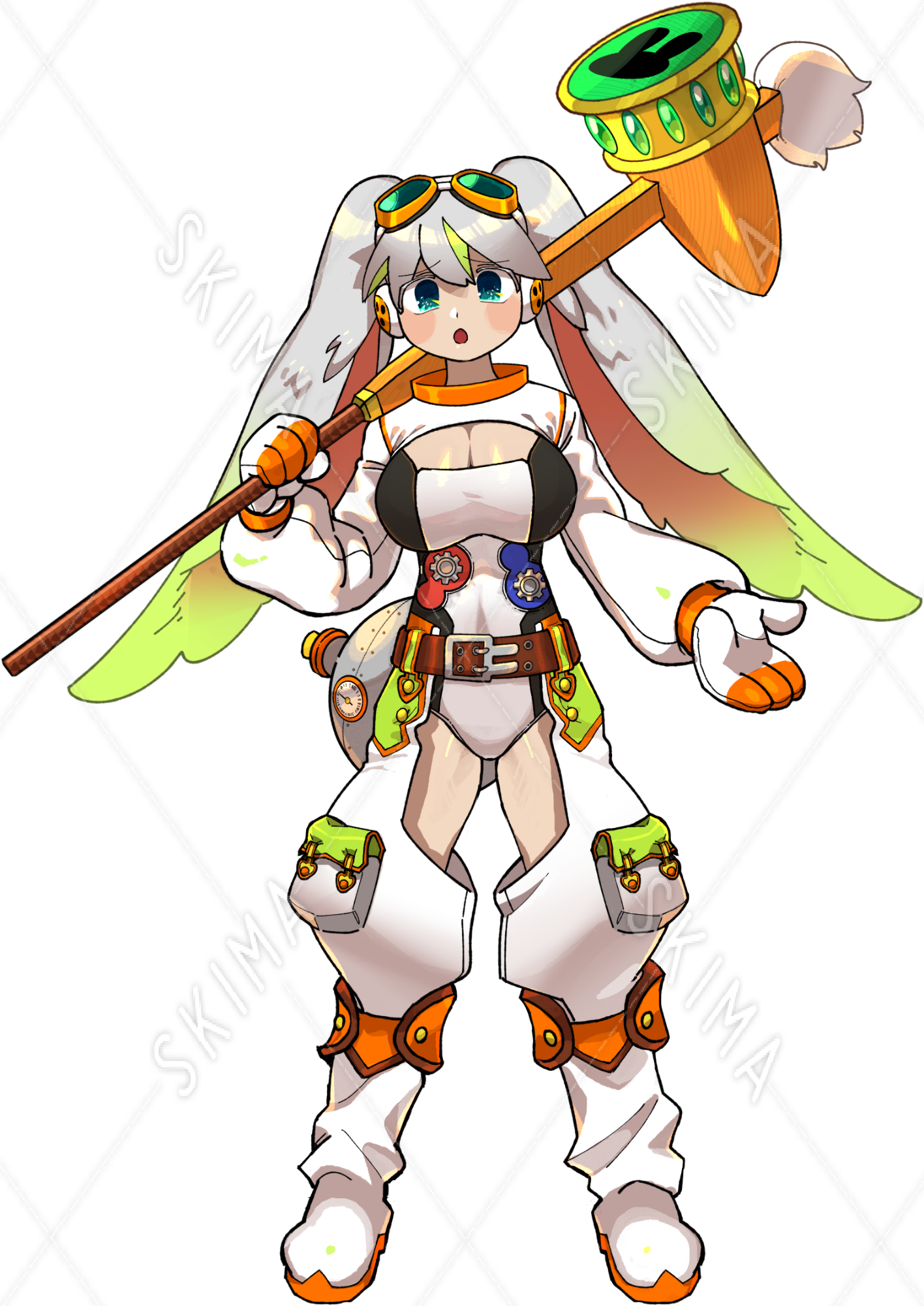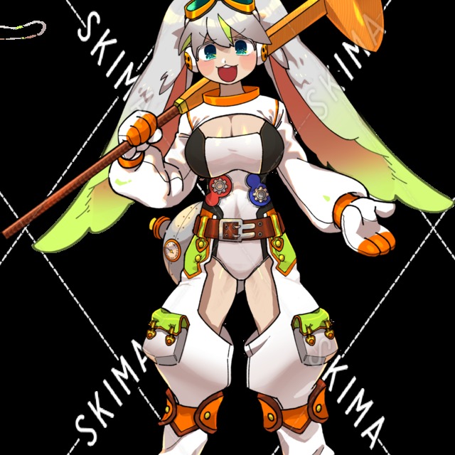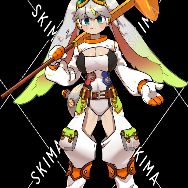 宇宙飛行士風、ハンマーが武器のうさみみ女の子です