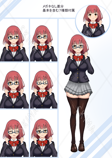 学園物のノベルゲーム、HPページ等で使用可能なキャラクター立ち絵。