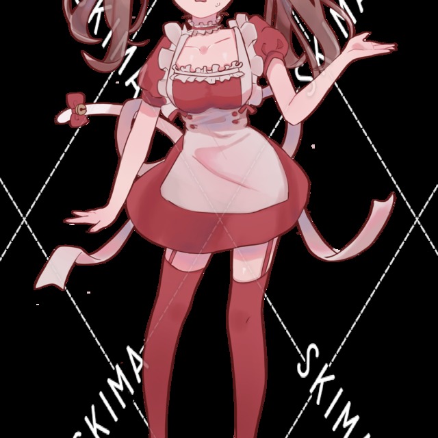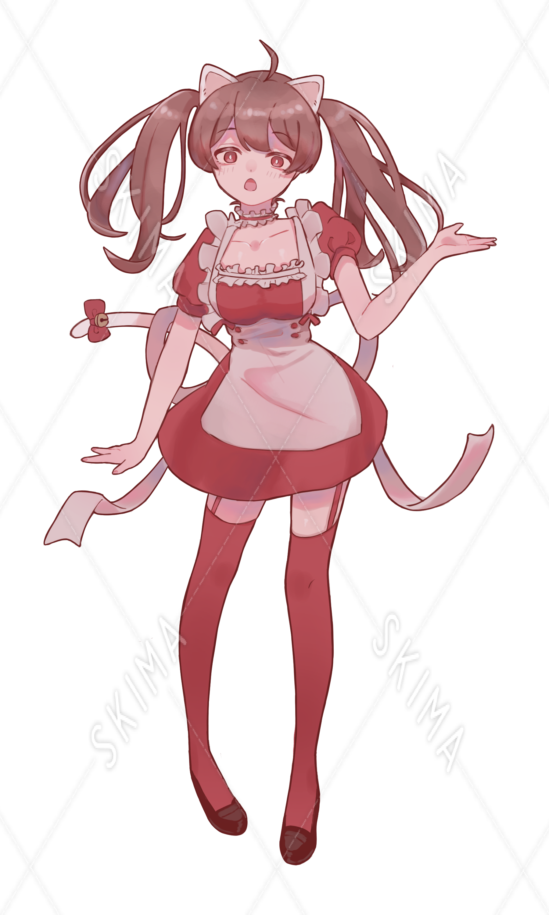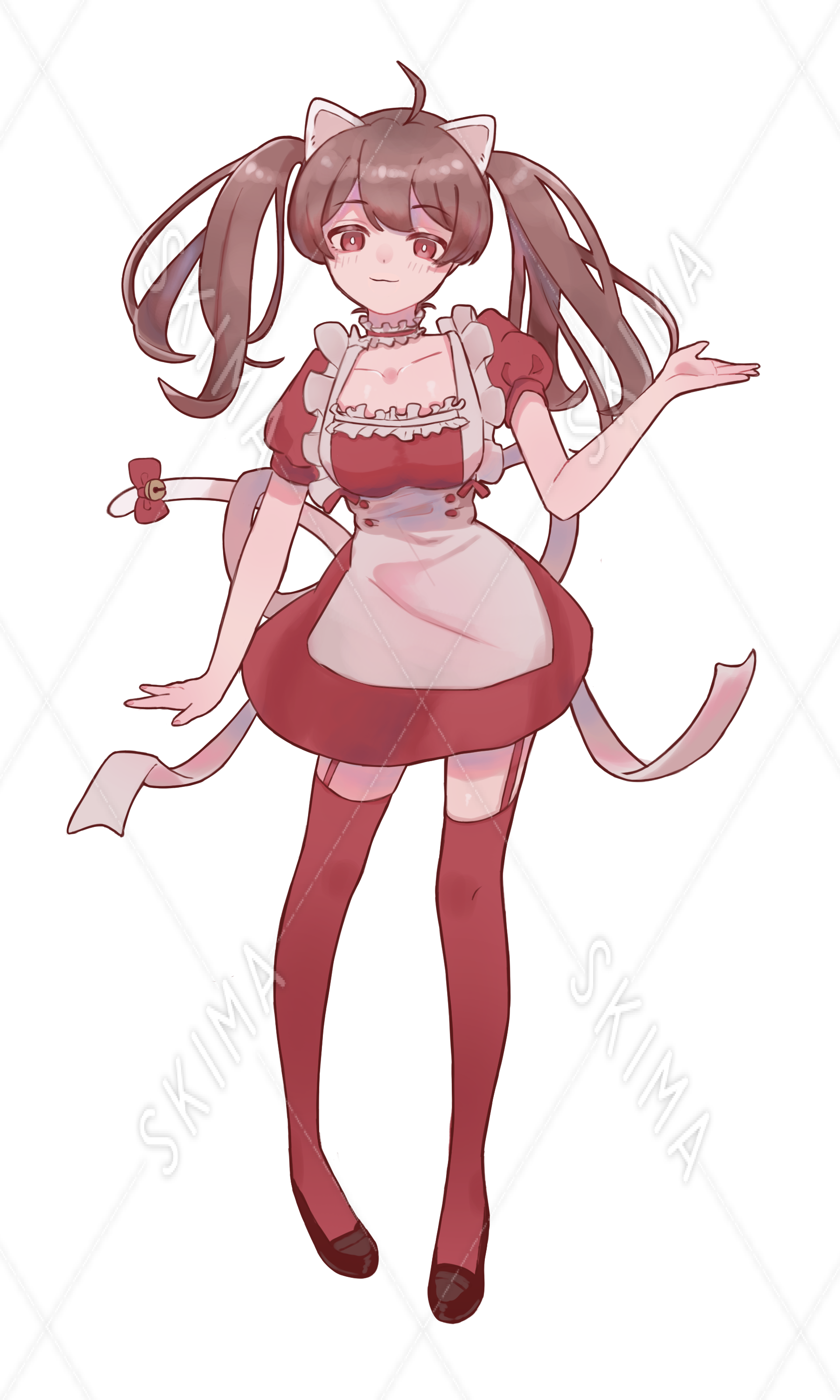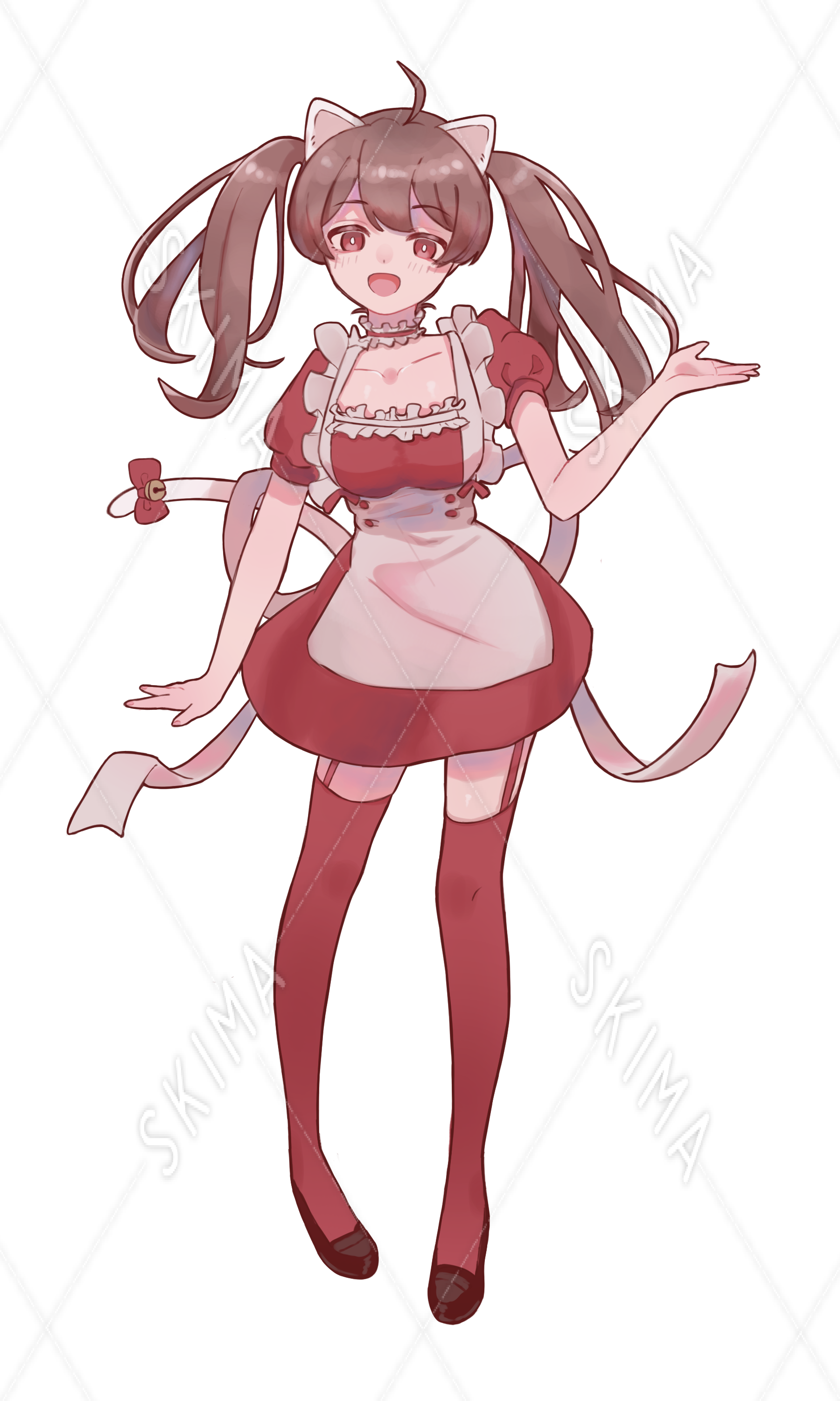 白猫のネコ耳カチューシャとしっぽをつけたツインテールの赤メイドです。表情全6種。