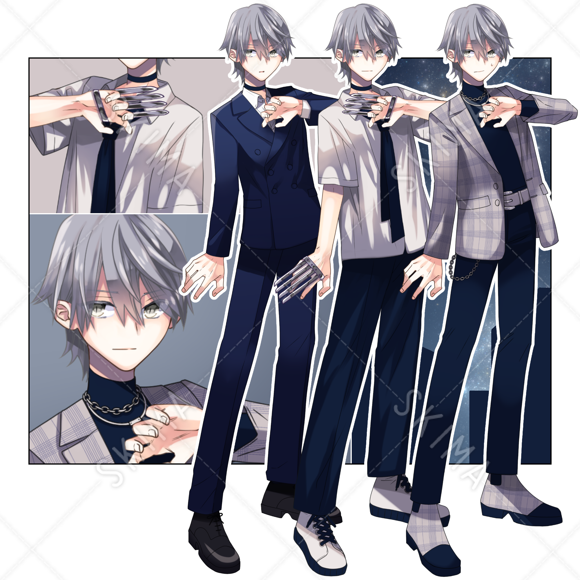 【12/14まで4割引】灰色髪の男の子【表情・衣装3種ずつ、武器パーツ付き】