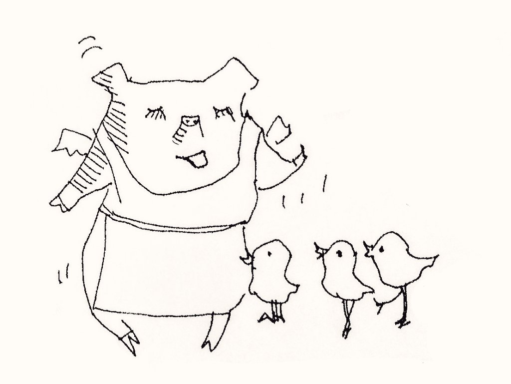 ヒヨコにダンスを教えるエンゼルブタ