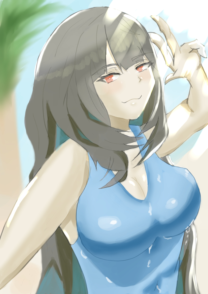 海沿いで、彼女が微笑んでいる