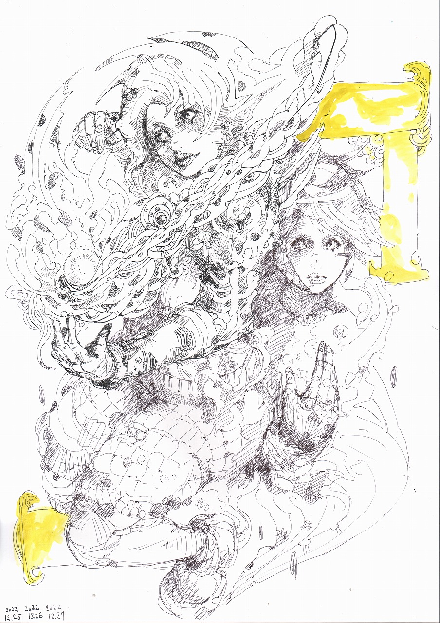 ペン画、