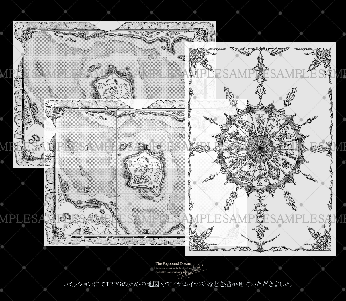 コミッションにてキャラクターイラスト・挿絵・地図・アイテムイラスト等描かせていただいております。