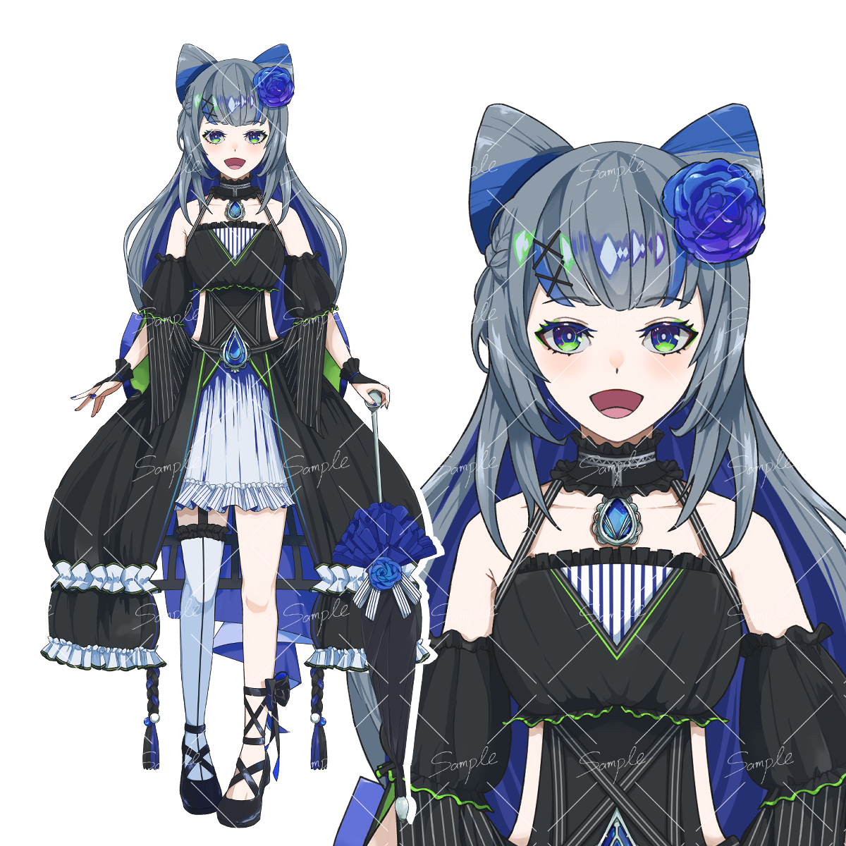 IRIAM対応可能な全身一枚絵のサンプルになります。 動作確認の様子は以下より確認できます。 【IRIAM 動作チェック】黒いドレスの女の子 https://youtu.be/zIjEgSxkeF8?si=x0HNbHVTmxALCFQD
