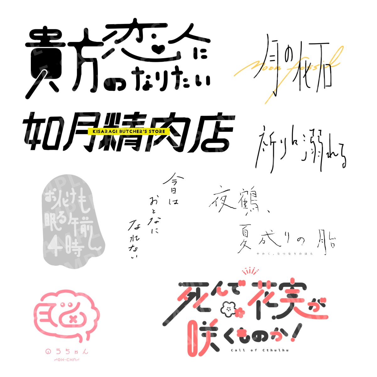 依頼を受けて作成したタイトルロゴや趣味でやっていた作字など