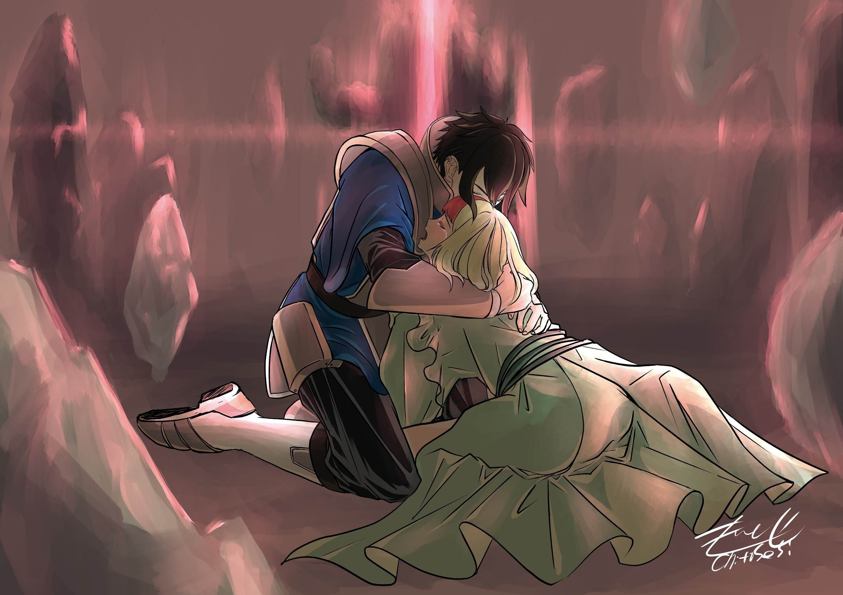 頭の中にあるイメージを描き出したもの 【参考価格内訳】 一枚絵基本料金…13000円 簡易自然物背景(厚塗り調)、 人物2人まで(シンプル塗りに厚塗り調をミックス) ※基本料金内