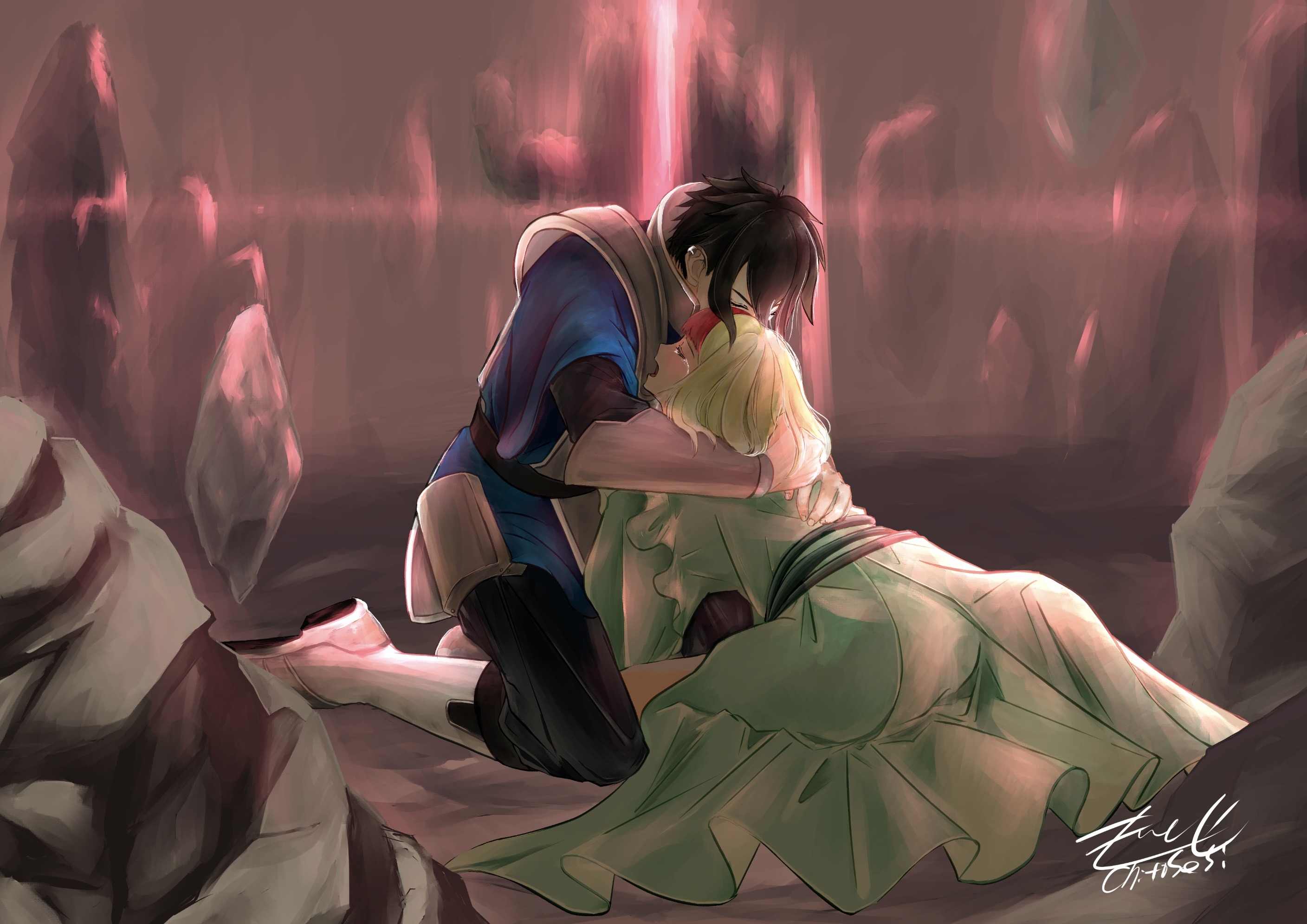 「魔」作品の人物、背景を加筆したもの 線画の上からより細かく描いていきます。時には線画を塗り潰して修正します。線画よりも時間をかけることが多いです。 一枚絵基本料金(背景、小物、人物詳細)………23000円 詳細自然物背景(厚塗り調)、 人物2人まで(人物厚塗り、線画色トレス、詳細描き込み) ※基本料金内