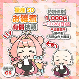 【所要時間(目安)】 制作時間は作品によって変動します。 ネームサイン(2h~)、SDイラスト(5h~)、一枚絵(10h~)、立ち絵(20h~) (※ラフ確認や返信待ち等、やり取りの時間は含まれていません) お見積りのみのご相談も随時受け付けております。 SDイラストを得意としておりますが、等身絵も対応可能です。