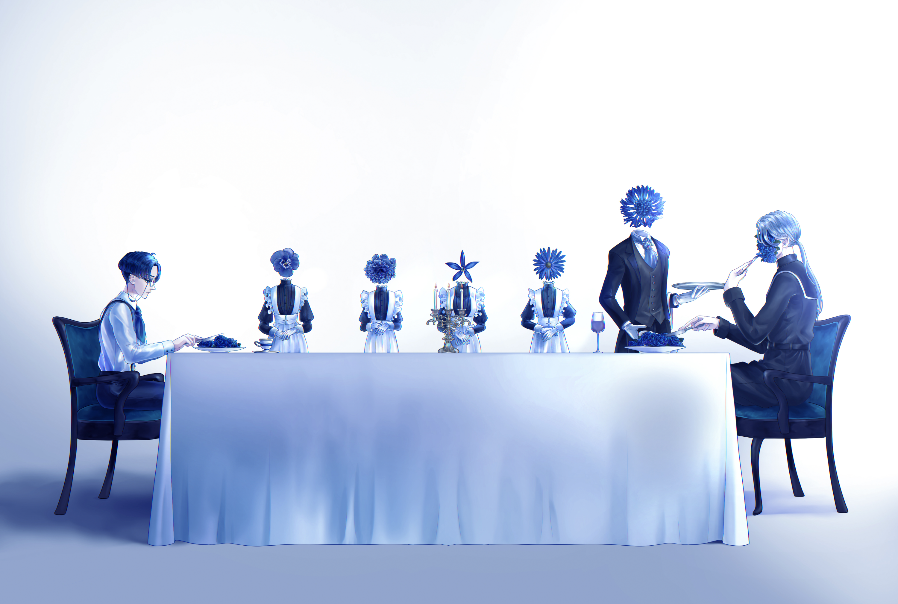 個人制作。アイコンにしているイラストです。 左側の少年の「記憶」をテーマにした作品で、彼がはっきりと思い出せない箇所を花に置き換えています。