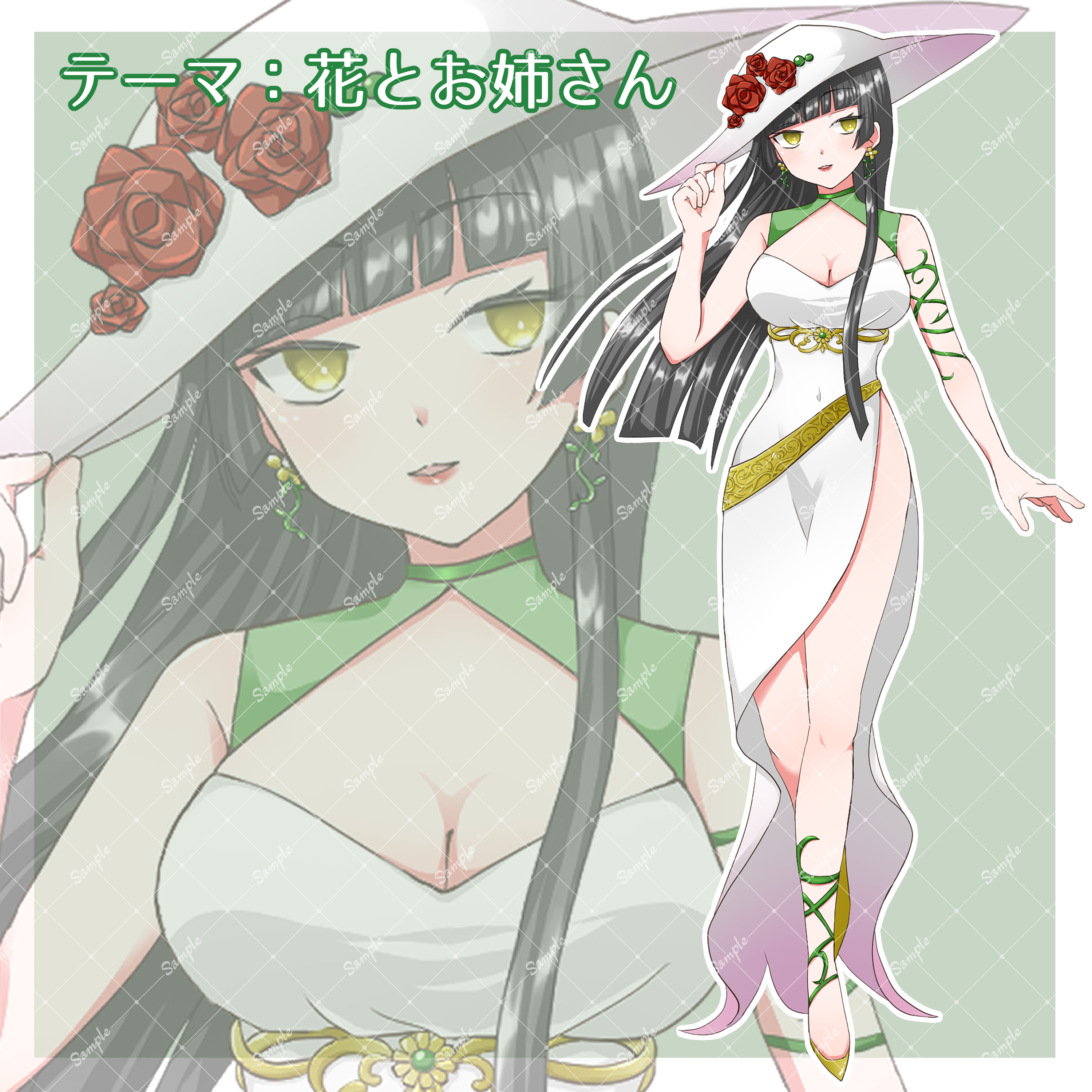花とお姉さんをテーマに立ち絵作成しました。