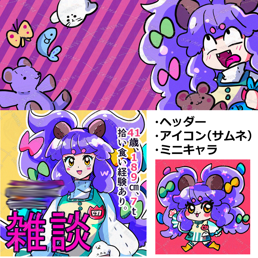 ヘッダー・アイコン・ミニキャラ揃えた自前フルセットです。
