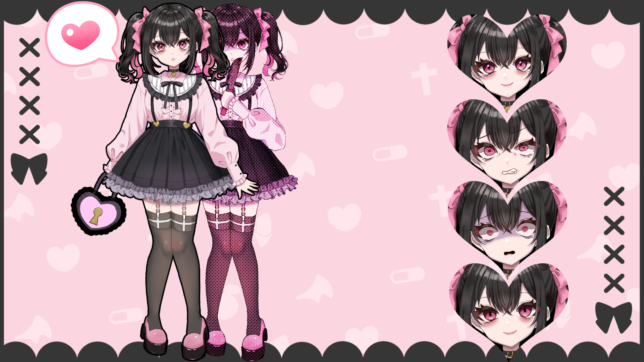 参考までに、以前自分用に描いた立ち絵です。 この場合、通常価格に表情差分3種とポーズ差分、複雑な小物追加になります。 (左右田はフリル描くの好きなので、これくらいだと複雑な衣装には含めず描きます、ご参考までに)