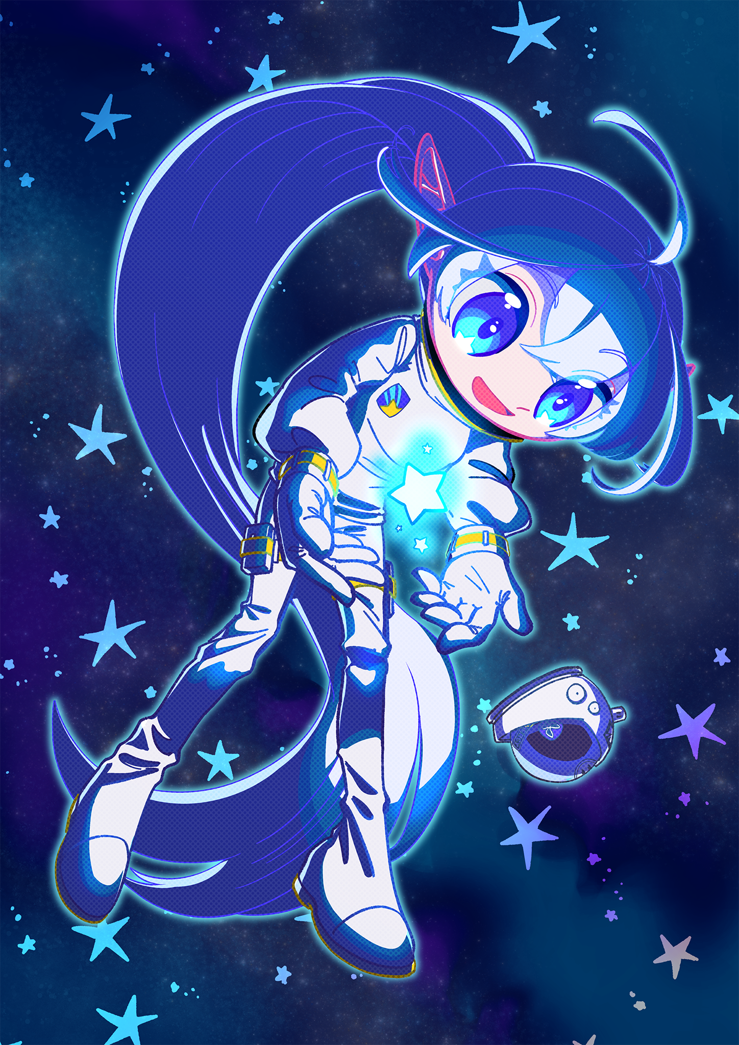デフォルメイラストの参考画像です。 5頭身と頭身は高めですが、顔のパーツまで丸みを帯びたデザインになっています。