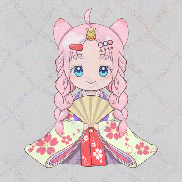 犬耳/犬しっぽ🐕のキャラクターです。 Vライバー活動にてひな祭りの際に使用しました。 参考使用先:デジタルグッズ、缶バッジ、アクスタ等