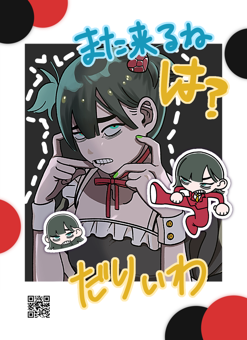 オリジナルキャラクター、だりぃわちゃんのチェキ風カード等のグッズ用イラストです。 (BOOTHショップにて販売中) 【だりぃわちゃん とは?】 赤スーツに黄色のネクタイがトレードマークの女の子。常にだるそうにしているのが特徴。