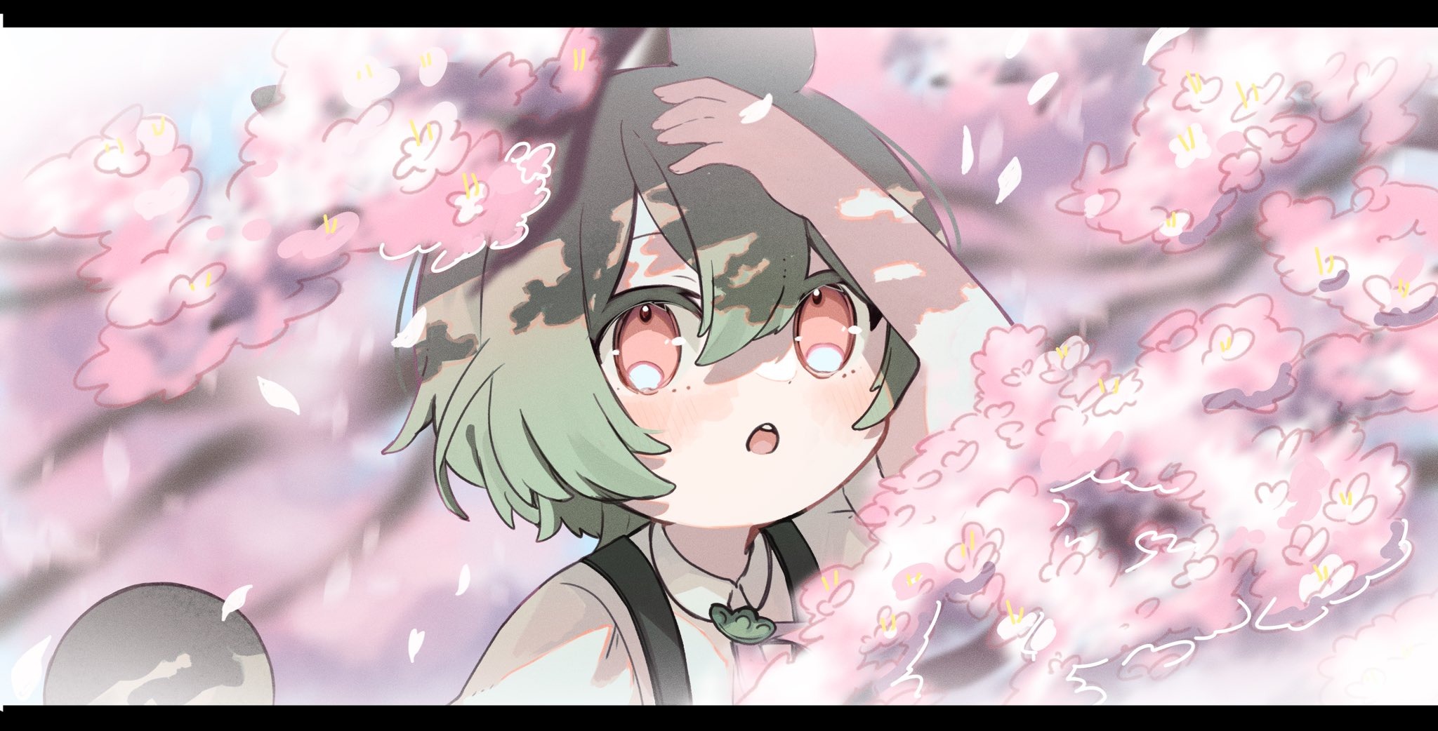 人物メインの背景付きイラストです。